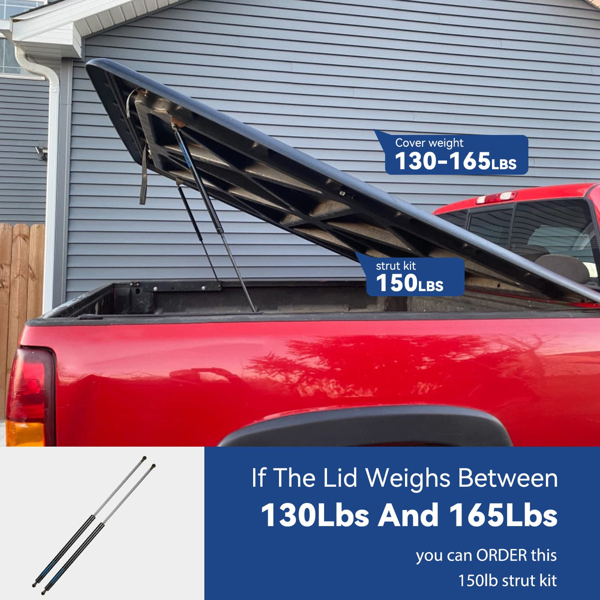 Q: What weight range is suitable for the ARANA ST360M150 gas struts?A: The ARANA ST360M150 gas struts are designed to support lids weighing between 130 to 165 pounds. It is crucial to measure the lid weight or check the part number to ensure compatibility.