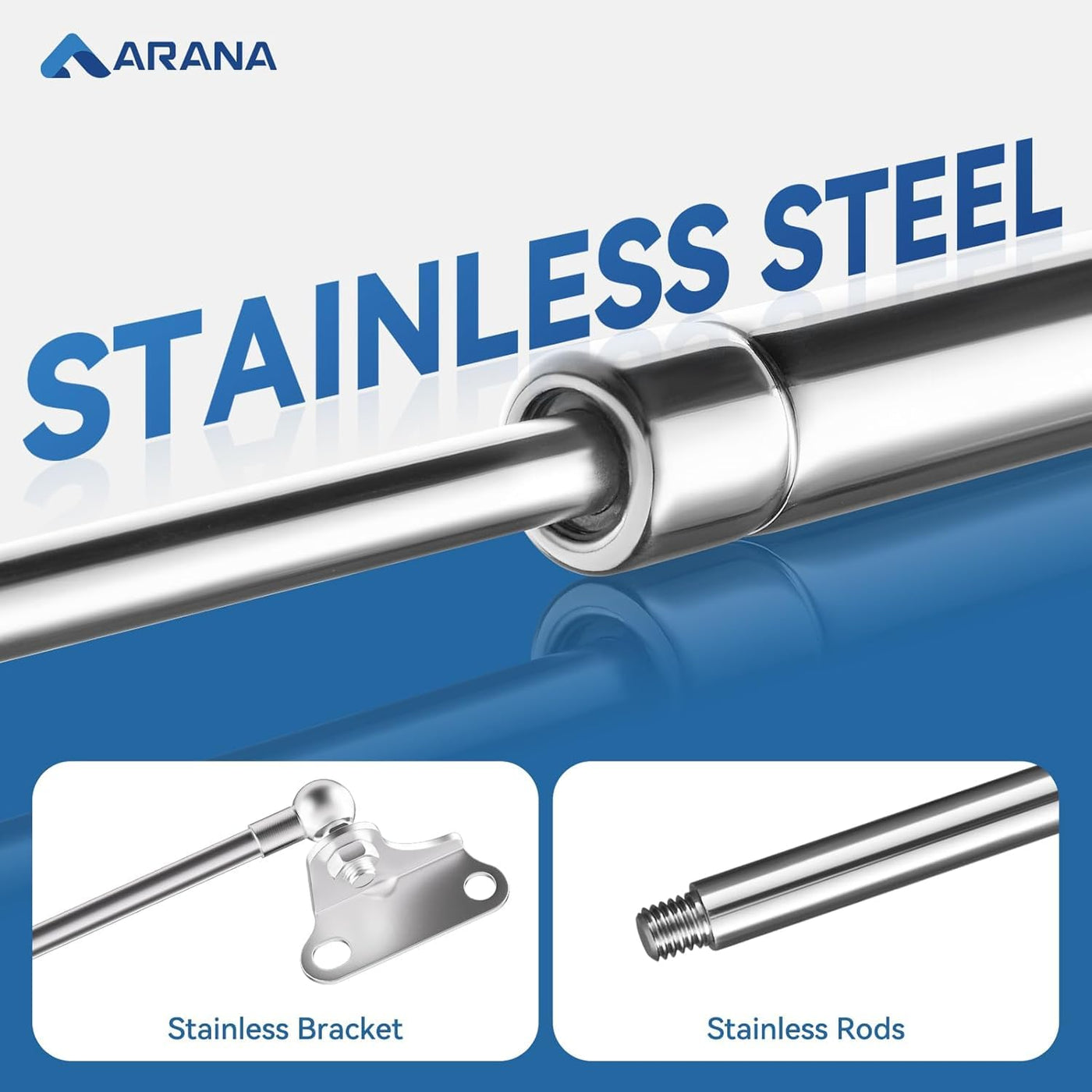 Arana Stainless Gas Struts 15 Inch 22.5Lbs, Marine Gas Struts 15 Inch 100N With Brackets, Hydraulic Lift Support Hinges For Ligh