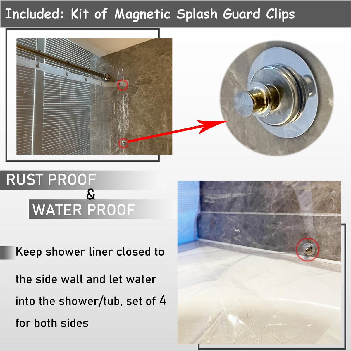 Arayarser 60X74 Shower Curtain Liner With Magnets & Side Magnetic Clips Kit For Leak Guard, Heavy Duty 60 X 74 Length Shower Liner Clear, 60X74
