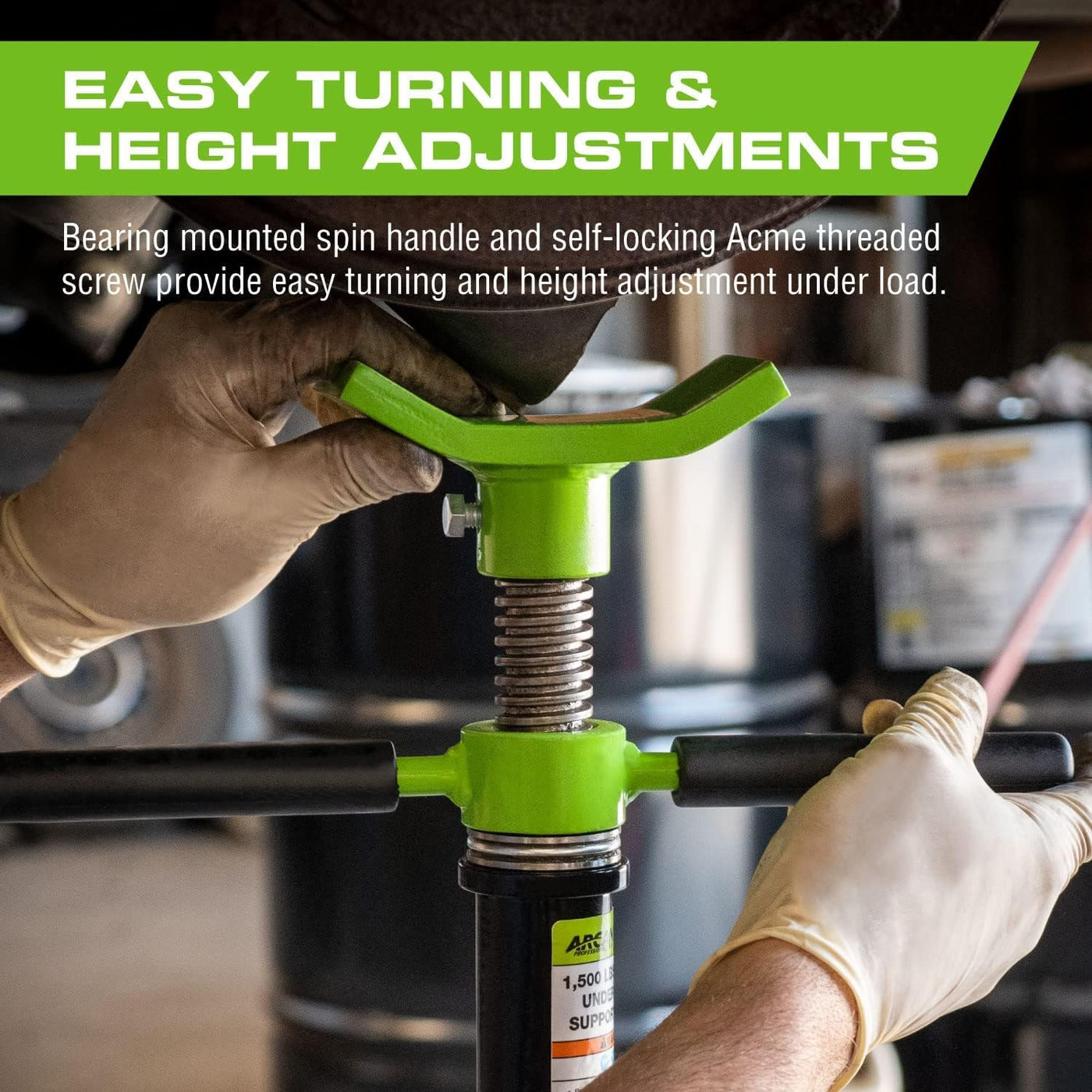 Arcan 1,500 Lb Underhoist Support Stand, Short Style, 48-76 Inch Height Range, Self-Locking Screw, Heavy-Duty Base, Alss15S