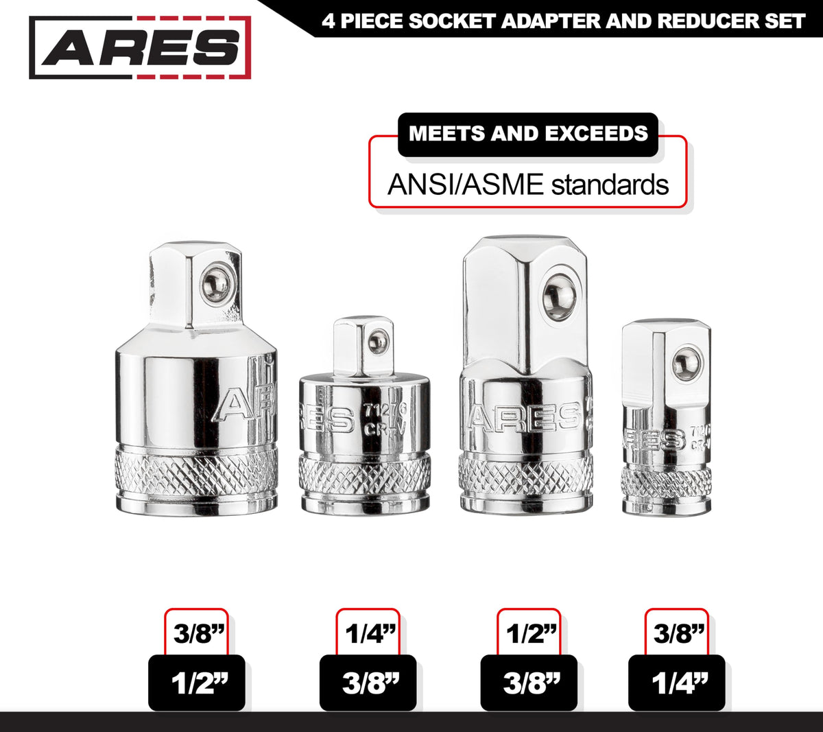 Ares 70007-4-Piece Socket Adapter And Reducer Set - 1/4-Inch, 3/8-Inch, & 1/2-Inch Ratchet/Socket Set Extension/Conversion Kit -