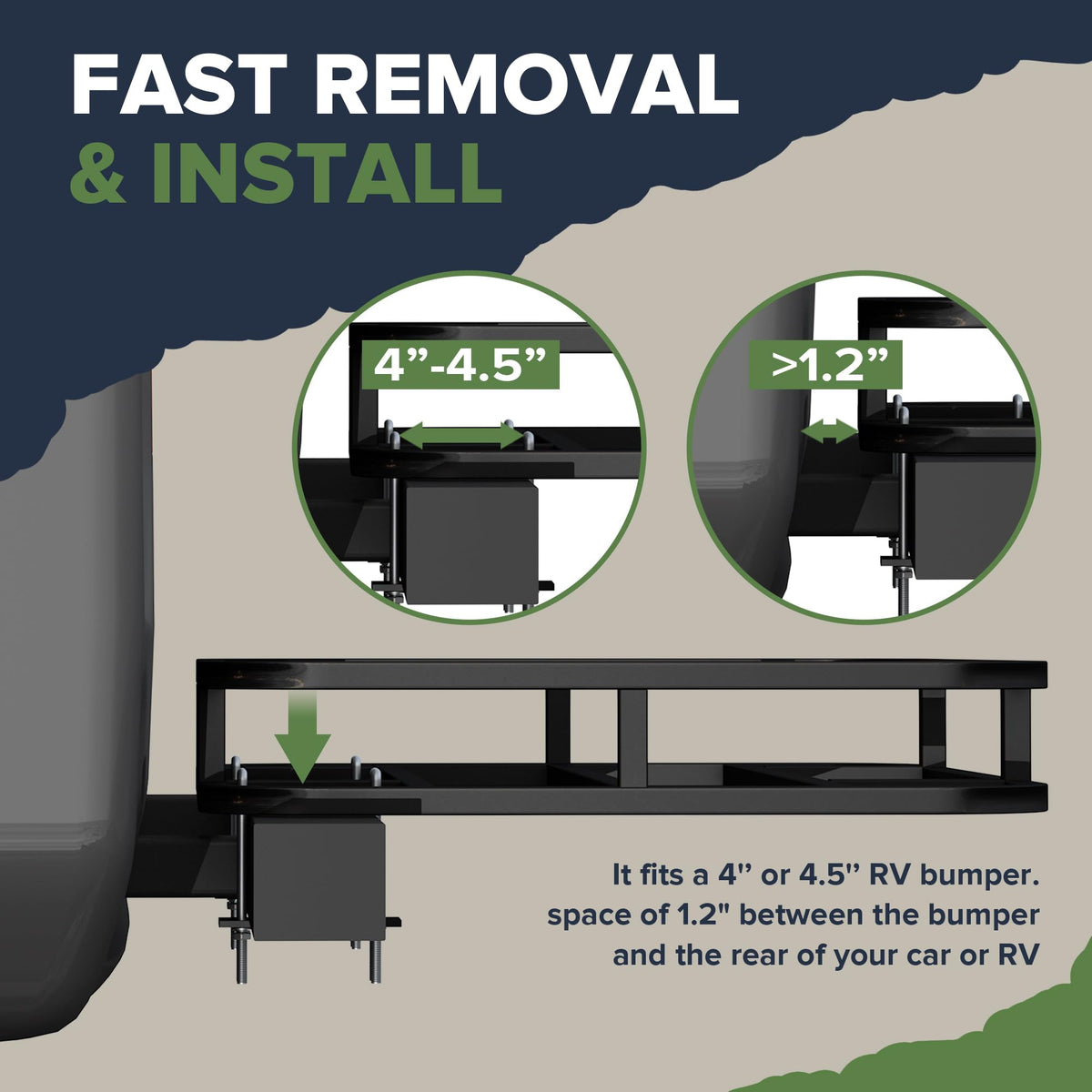 Headed On A Road Trip And Worried About How You'Ll Carry All That Luggage In Your Vehicle? Choose This Cargo Basket That Allows You To Store Bags, Camping Equipment, Fishing Gear And Much More. Perfect For A Camping Adventure Or Cross-Country Road Trips, This Carrier Has A Storage Capacity Of Up To 350 Lbs And Is The Perfect Rack Size To Fit A Variety Of Items Like A Cooler Or Fire Wood. You Can Use This Carrier By Mounting It To The Bumper (4' - 4.5') Of The Rv.