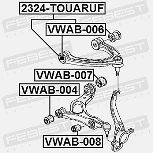 Q: What vehicles are compatible with the Febest VWAB-007 Arm Bushing?A: The Febest VWAB-007 Arm Bushing is compatible with several part numbers, including 7L0407182E, 7L0407182C, and 955.341.24203. It is essential to verify compatibility with your specific vehicle model before purchasing.