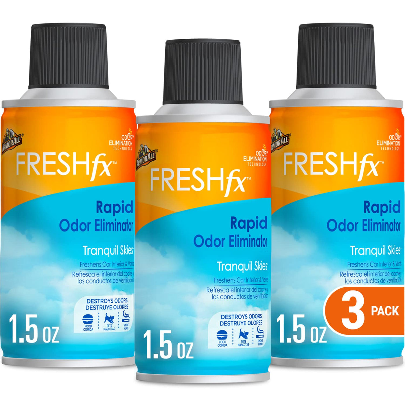 Armor All Freshfx Rapid Odor Eliminator in Tranquil Skies scent destroys stubborn odors for fast, effective results. This advanced car freshener uses Odor Elimination Technology to remove food, pet and smoke odors in your car or truck. Plus, this powerful odor neutralizer freshens areas in your car interior that other car fragrance products can't always reach-including the vents. All that's left behind is a refreshing Tranquil Skies scent, a burst of crisp fragrance with notes of apple, freesia and lush greens. With car care products from Armor All, you get effective results for your car.