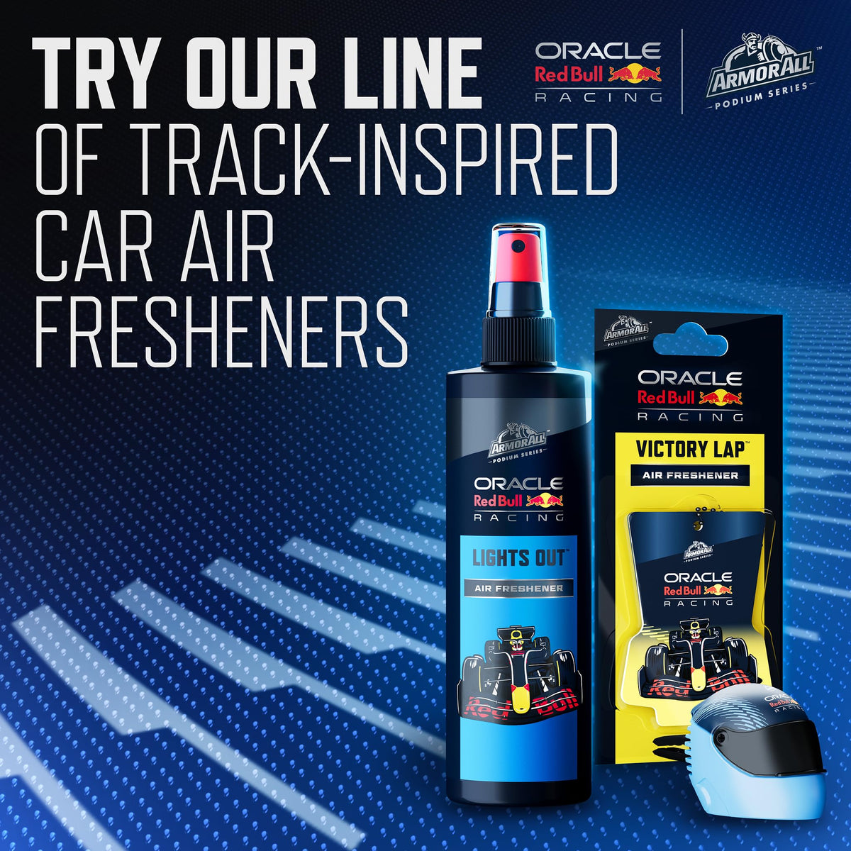 Bring the thrill of the track to your ride with the Armor All Podium Series All Access Pass Hanging Car Air Freshener in Lights Out scent. This premium racing-inspired car air freshener features a convenient lanyard for easy hanging from your rearview mirror. The Lights Out scent blends warm woods and leather with notes of lemon verbena and patchouli to create a rich, dynamic car fragrance that lasts lap after lap. Each auto air freshener keeps your cars interior smelling fresh for up to 40 days.* Engineered for exceptional results, Armor All Podium Series car air fresheners are part of a collaboration between Armor All and Oracle Red Bull Racing. In addition to the All Access Pass, our hanging car air fresheners are also available in other track-inspired shapes, such as a car and a helmet. Elevate your cars interior with the Armor All Podium Series Hanging Air Freshener. (*Under ambient conditions)