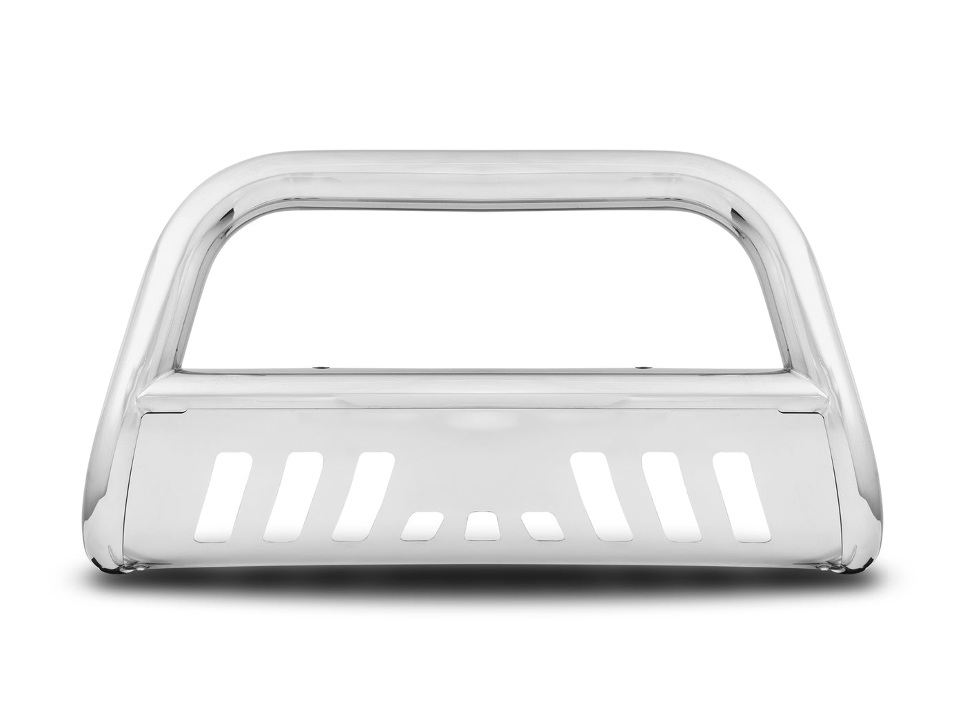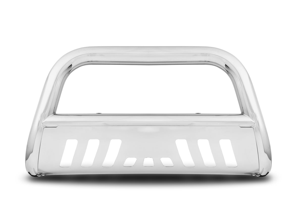Q: How does the Armordillo Bull Bar enhance vehicle protection?A: The bull bar is constructed with seamless mandrel bent 3" tubes that provide maximum rigidity and durability, coupled with a skid plate for added protection against rocks and debris.