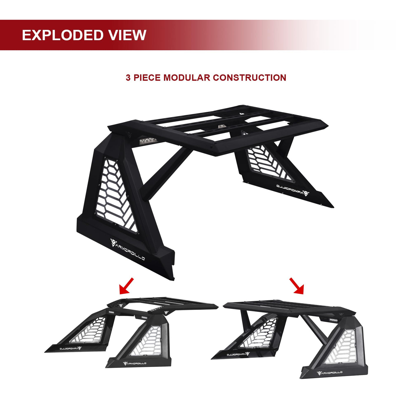 CR-X Chase Rack By Armordillo USA. The First Impression Is An Ever Lasting Impression. Style And Function Can Mix Together Quite Well. Our CR-X Chase Rack Is Your Elite Choice When It Comes To Any Chase Racks Out In The Market. Our Unique Design Features A Removable Cargo Rack Which Allow For This Chase Rack To Be Switch Into 3 Different Configurations. It Also Includes Pre-Drilled Holes For Up To 4 Auxiliary Lights. Arm Your Off-Road Beast With Armordillo, An Industry-Leading Manufacturer Of Top-Of-The-Line Truck Accessories And Parts. Years Of Ingenious Engineering And Passion For The WorldS Toughest Trucks Has Been Poured Out Into Providing Hardcore Off-Road Products Designed To Turn Your Beefy Companion Into The Embodiment Of Sleekness, Edginess, And Aggression.