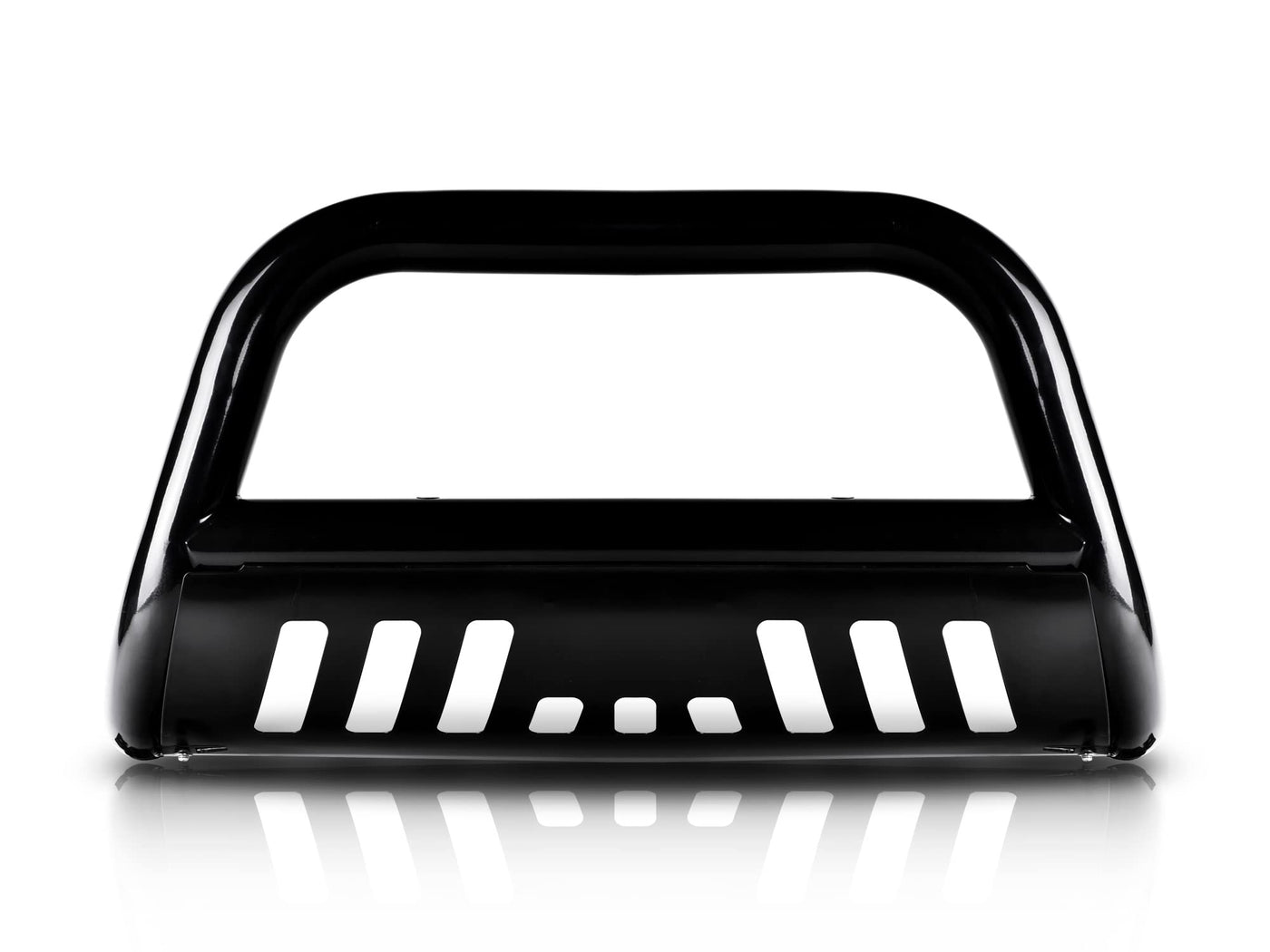 Q: What are the benefits of the skid plate included with the Bull Bar?A: The skid plate adds an extra layer of protection to the front end of your vehicle, shielding it from flying rocks and debris, while also enhancing the overall style of your truck.