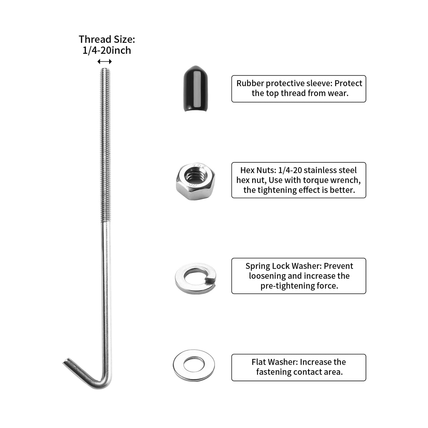 ARONOVA 8 inch J Hook Battery Hold down bolts, 2-Pack, 304(18-8)stainless steel. Holds down your battery securely. Includes J-Hooks, hex nuts, spring lock washers, flat washers, and rubber protective sleeves. Works with most 6 and 12-volt batteries.