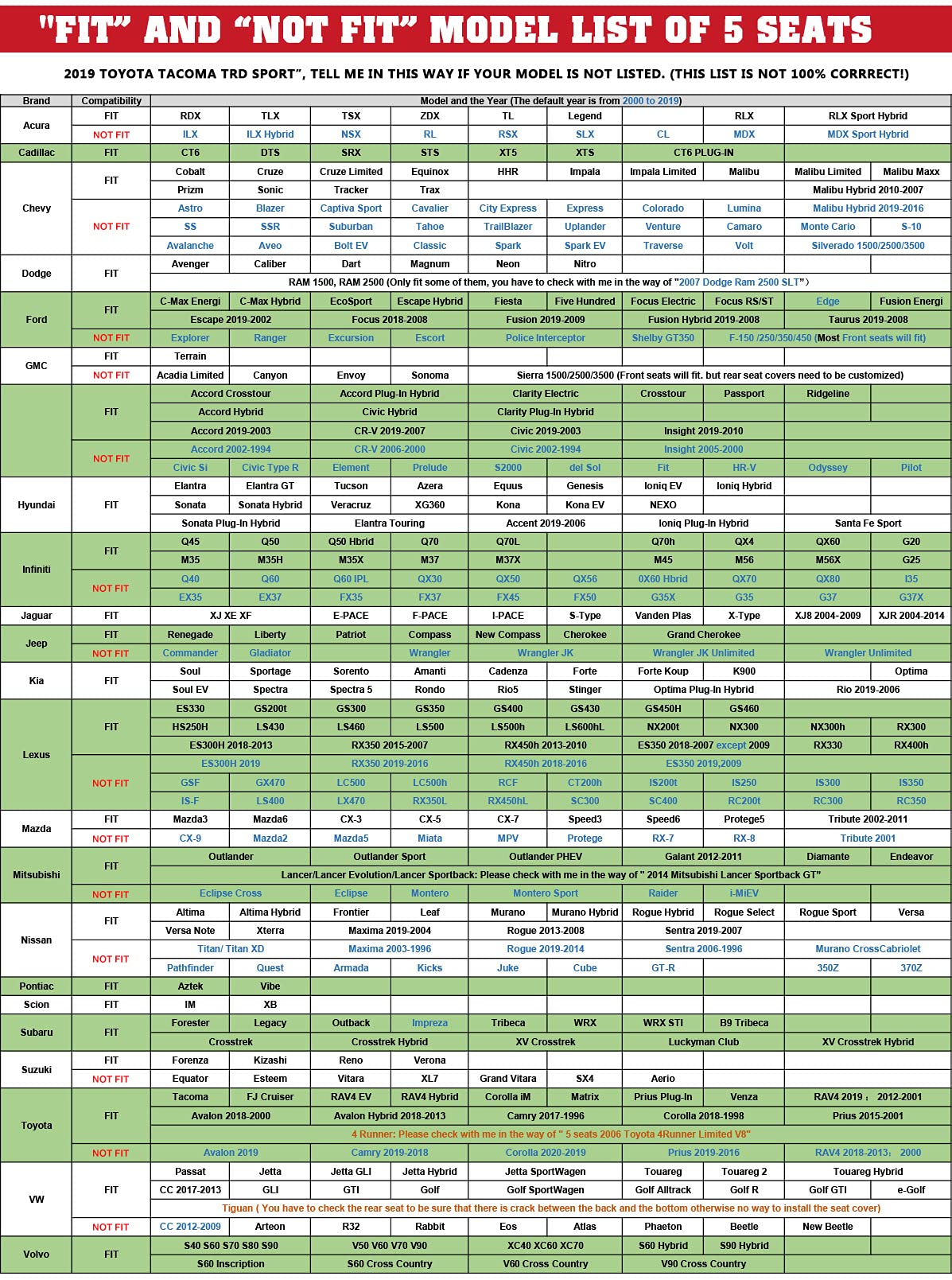 It is legitimately difficult to quantify in words or even photos how nice these ''car seat covers'' are. they're legit soft, feels luxury,and semi-flexible come with back and neck support, pretty comfortable and neat- could hardly be classified as covers,far more like physical car seats that top your own seats as a base. They are incredibly thick AND have padding inside ,more like the Face/Off of car seat covers. Putting virtually an entirely new SEAT on top of your car seat. | It was legit like taking an unstuffed car seat out and using you own seat as a form of stuffing. There's so much dimension to the design - high and low areas built into the physical shape of the seat and sewn into the pattern - that when you put these on top of your car seats, absolutely no one will be able to tell there's anything at all underneath. They look like fully new car seats. | They fit like a dream! There are spots on the smaller car's seats where there are minor gaps, but if you weren't poking around feeling for them, you would never know. The way the seat covers are made, with their own support and body structure, it appears they can go over probably most car's seat sizes and feel snug and like authentic seats because the cover does not slip around, sag, or ripple as a result of its rigidity. | Highly recommend to anyone looking for car seat covers that are not going to look like cheap, sagging slipcovers on a tired old sofa. Anyone who didn't want to hide nice leather seats with clunky fabrics or neoprene covers, because these sets are legit indistinguishable from leather (seriously. indistinguishable) ,as easy as your car seats to clean - possibly easier. | Easy to Install, Follow our simple step installation process, just about 25 minutes, no tool needed. Installation instructions are included in the package. Package includes: 1*Full Set Black&Beige Car Seat Cover,Full Set Plastic Accessory And Hooks,An installation manual.