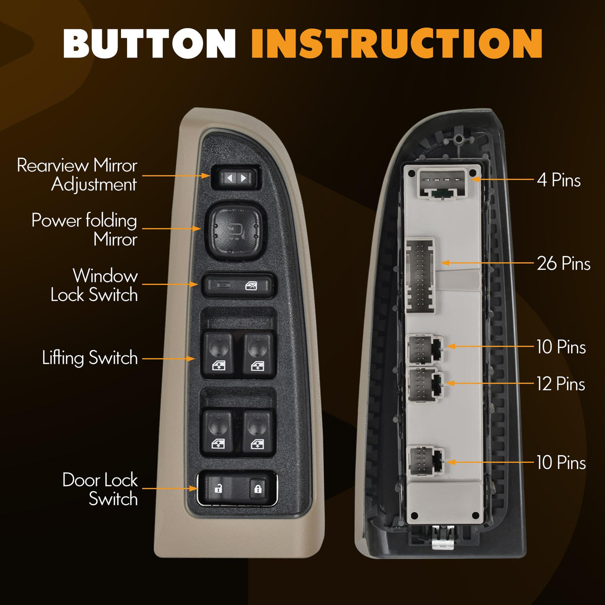 15883320 Front Driver Side Door Lock and Power Window Switch & Tan Bezel Assembly Fit for 2003-2007 Chevy Avalanche Silverado Suburban Tahoe GMC Yukon Sierra, Cadillac Escalade# 920-020 DWS-241