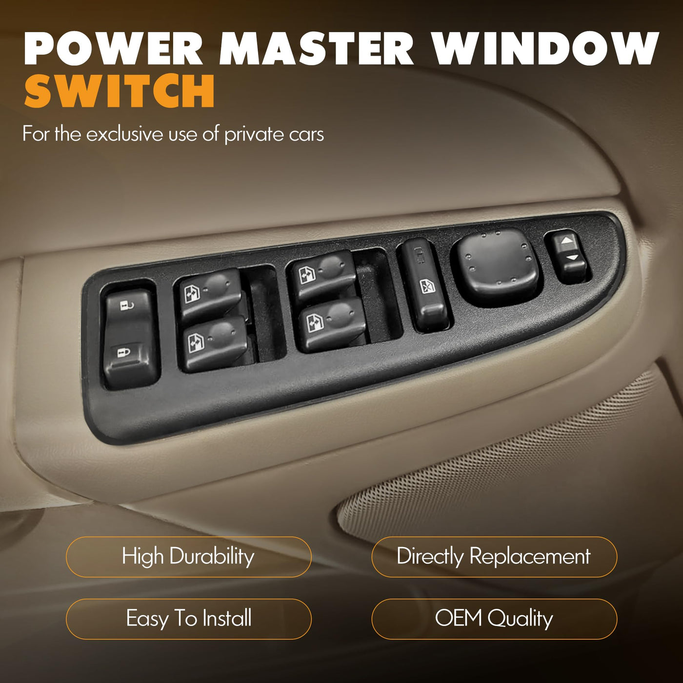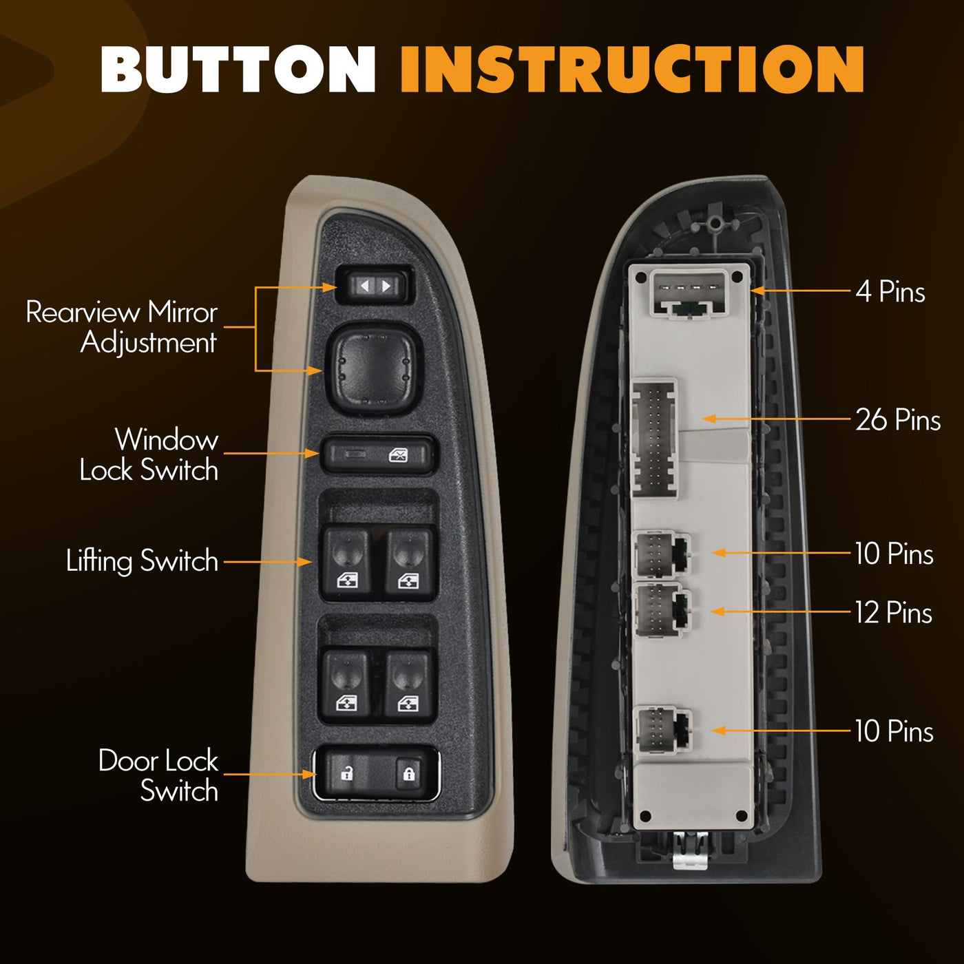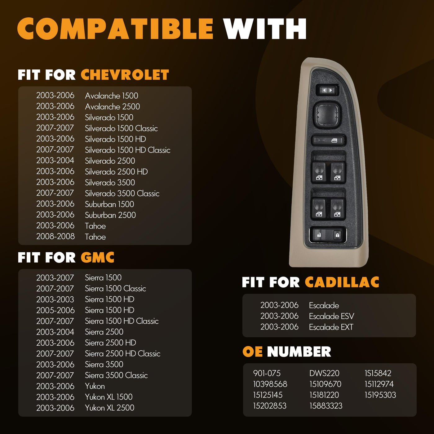 15883323 Front Driver Side Door Lock and Power Window Switch & Tan Bezel Assembly Fit for 2003-2008 Chevy Avalanche Silverado Suburban Tahoe GMC Yukon Sierra Yukon XL Cadillac Escalade 901-075#DWS-220