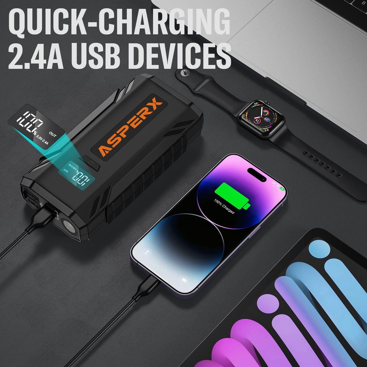 ASPERX Car Jump Starter, 2000A Peak Battery Jump Starter for Up to 7.0L Gas or 5.5L Diesel Engine, 12V Portable Battery Starter