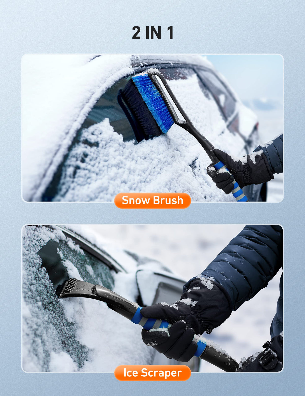Astroai 27'' Snow Brush And Detachable Ice Scraper With Ergonomic Foam Grip For Cars, Trucks, Suvs (Heavy Duty Abs, Pvc Brush, B