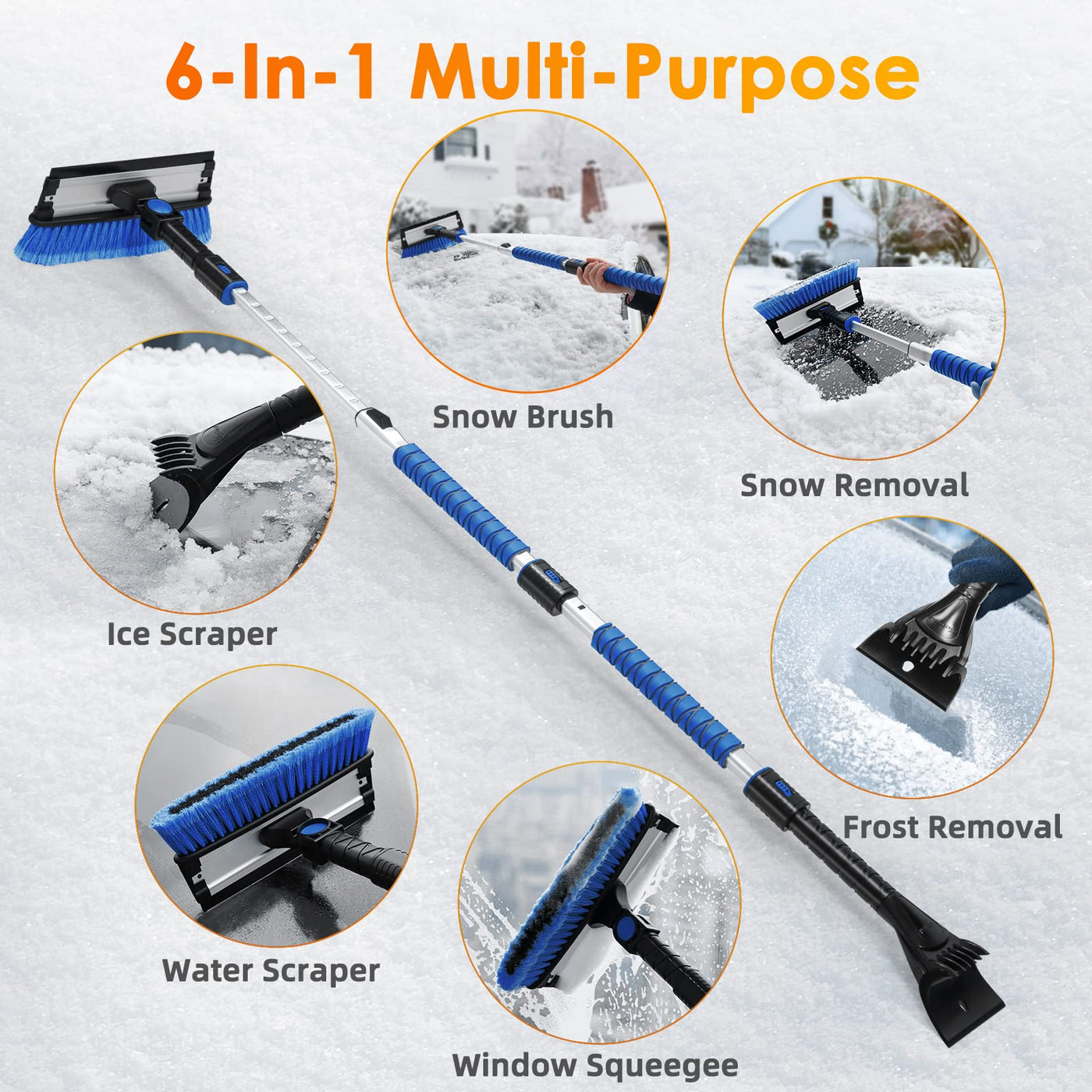 Astroai 62.4'' Ice Scraper And Snow Brush With Squeegee, Extendable, Detachable Pivoting, Anti Scratch, Durable Aluminum Body, S