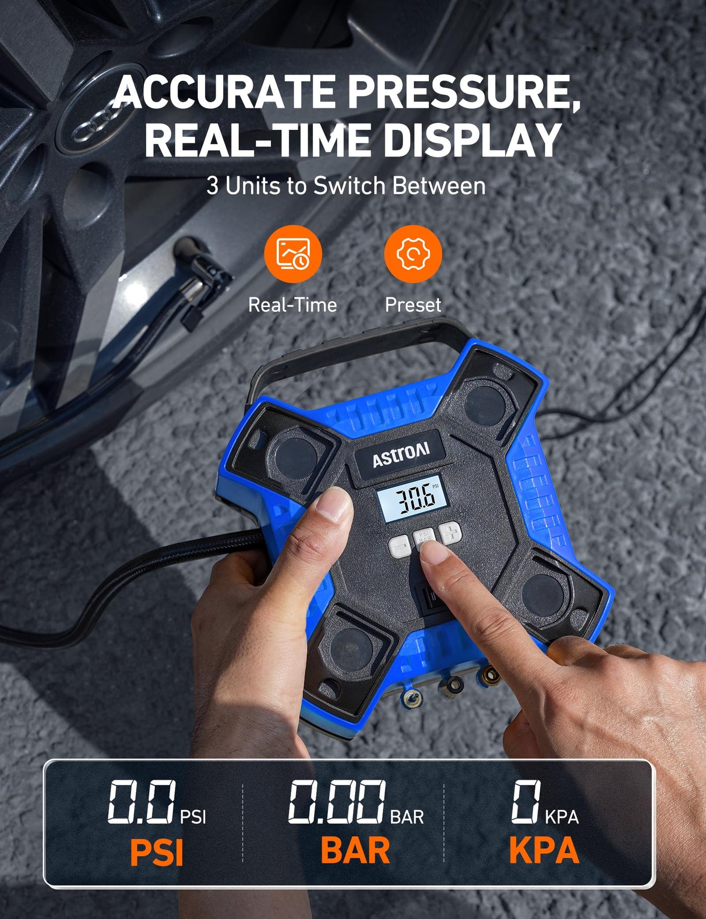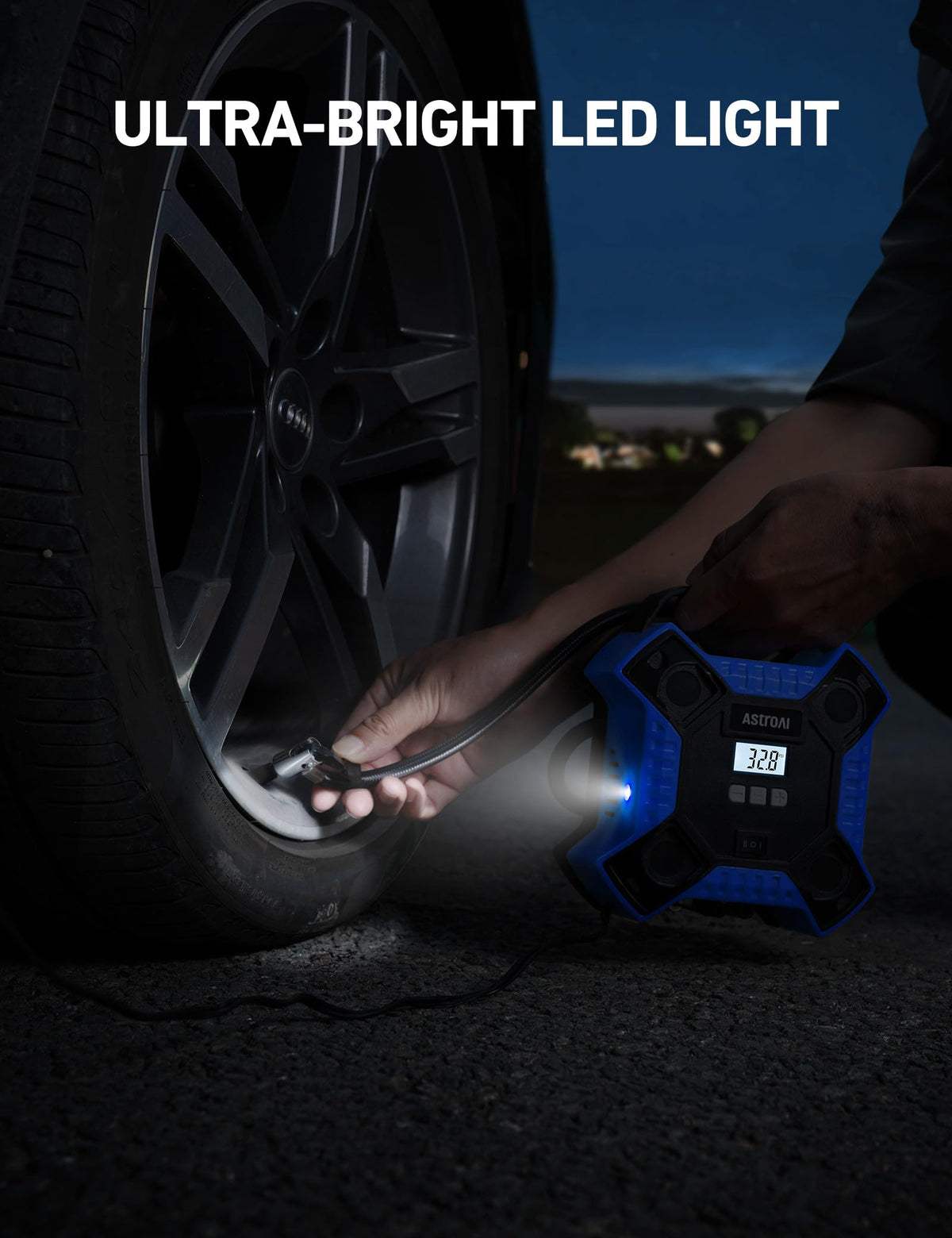 Astroai Air Compressor Tire Inflator Portable Air Pump For Car Tires, 12V Dc Digital Tire Pump 160Psi With Led Light For Cars, Bicycles, Motorcycles, And Other Inflatables