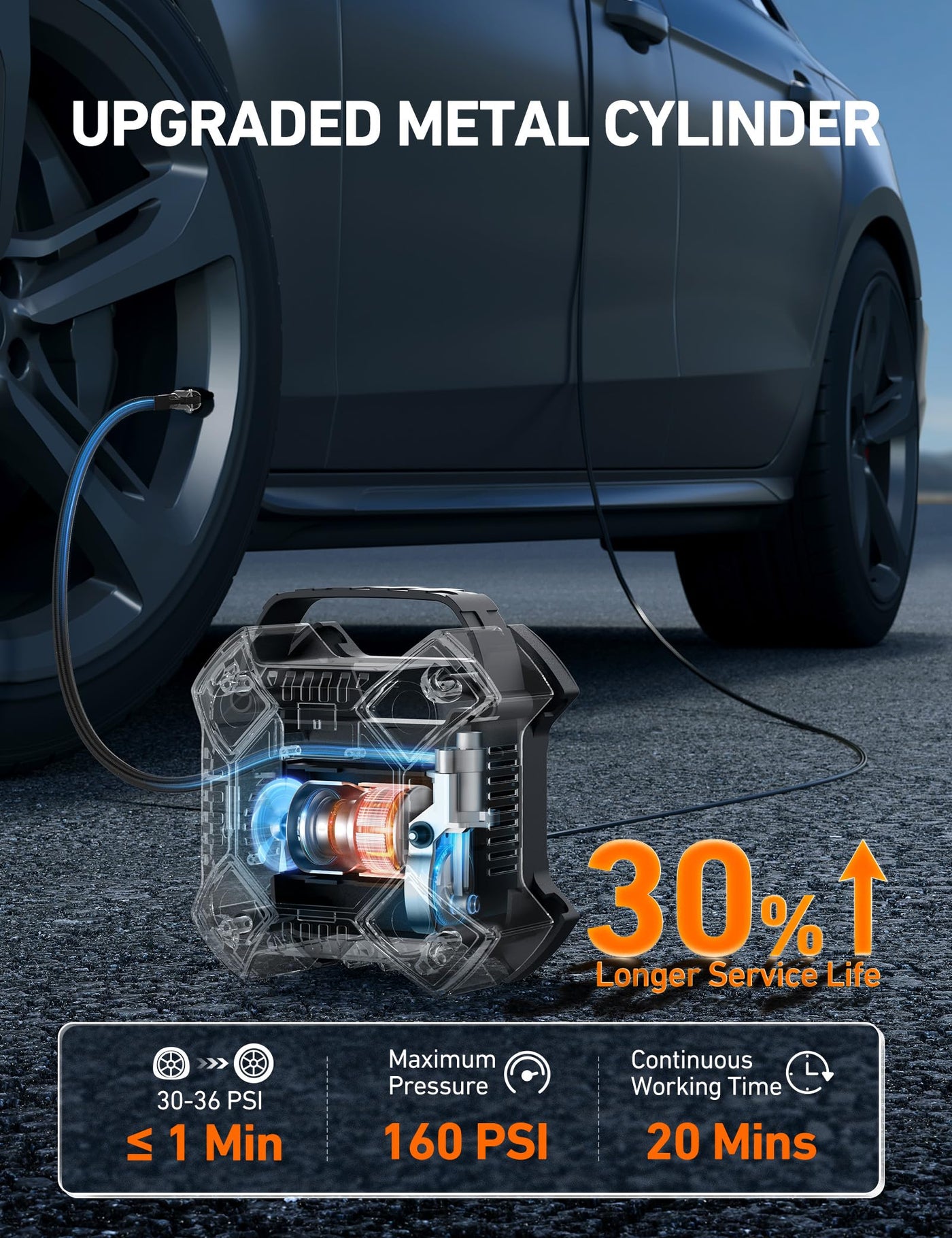Astroai Air Compressor Tire Inflator Portable Air Pump For Car Tires, 12V Dc Integrated Metal Structure Tire Pump 160Psi With Le