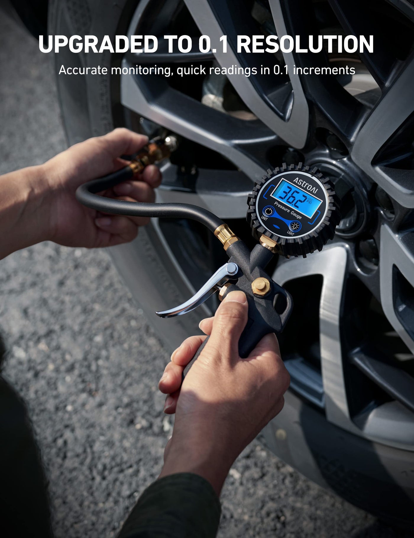 Astroai Digital Tire Pressure Gauge With Inflator, 250 Psi Air Chuck And Compressor Accessories Heavy Duty With Quick Connect Co