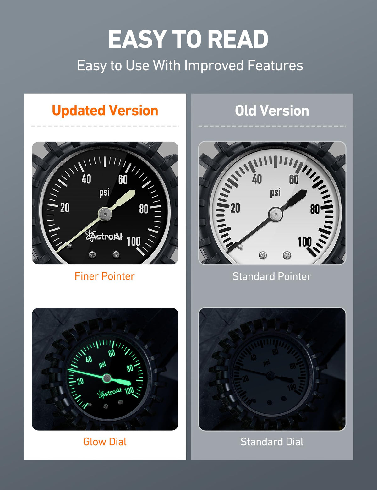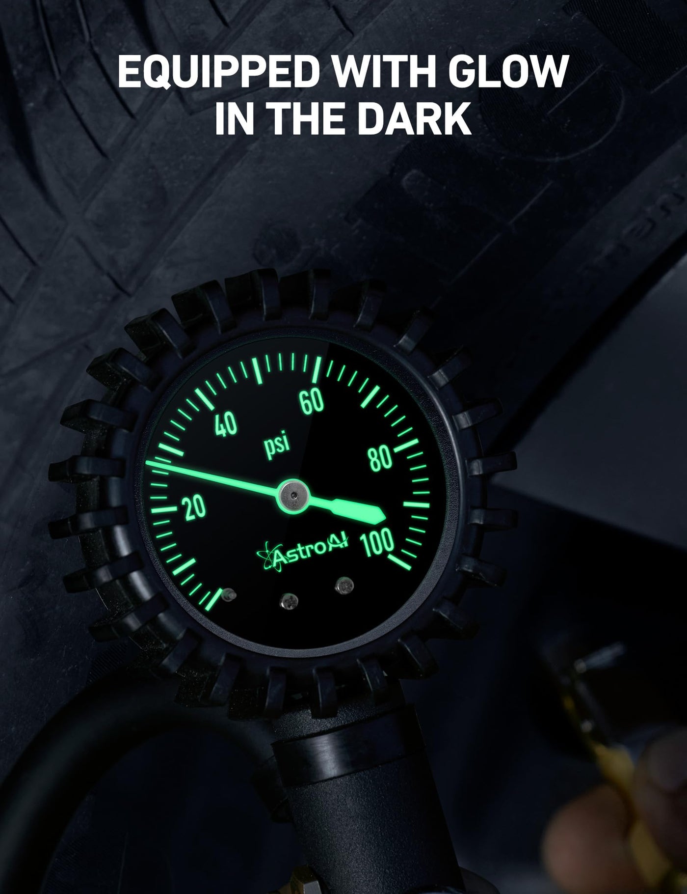 AstroAI Glow Dial Tire Inflator with Pressure Gauge 100 PSI, Heavy Duty with Large 2'' Easy Read Glow Dial, Air Chuck, Quick Con