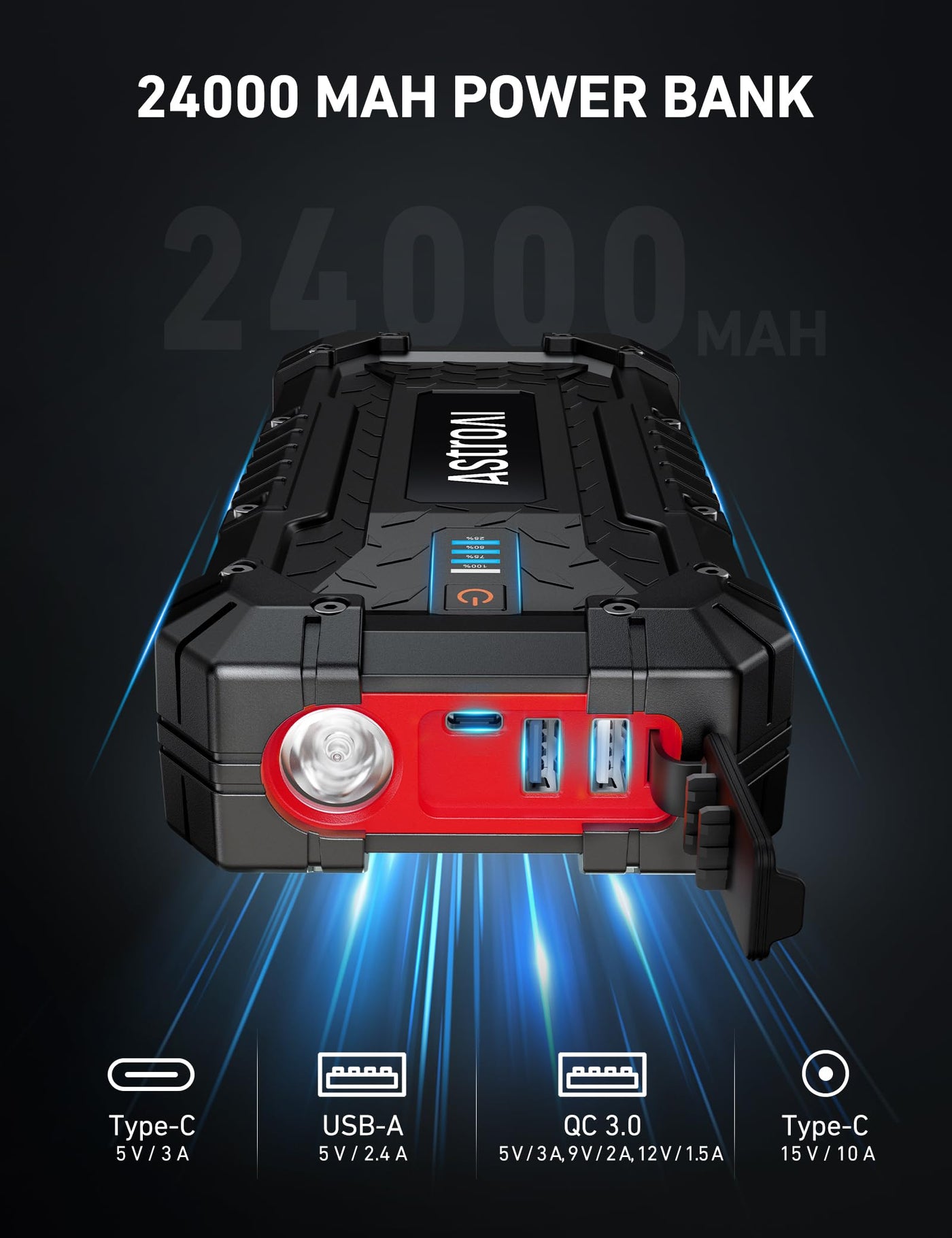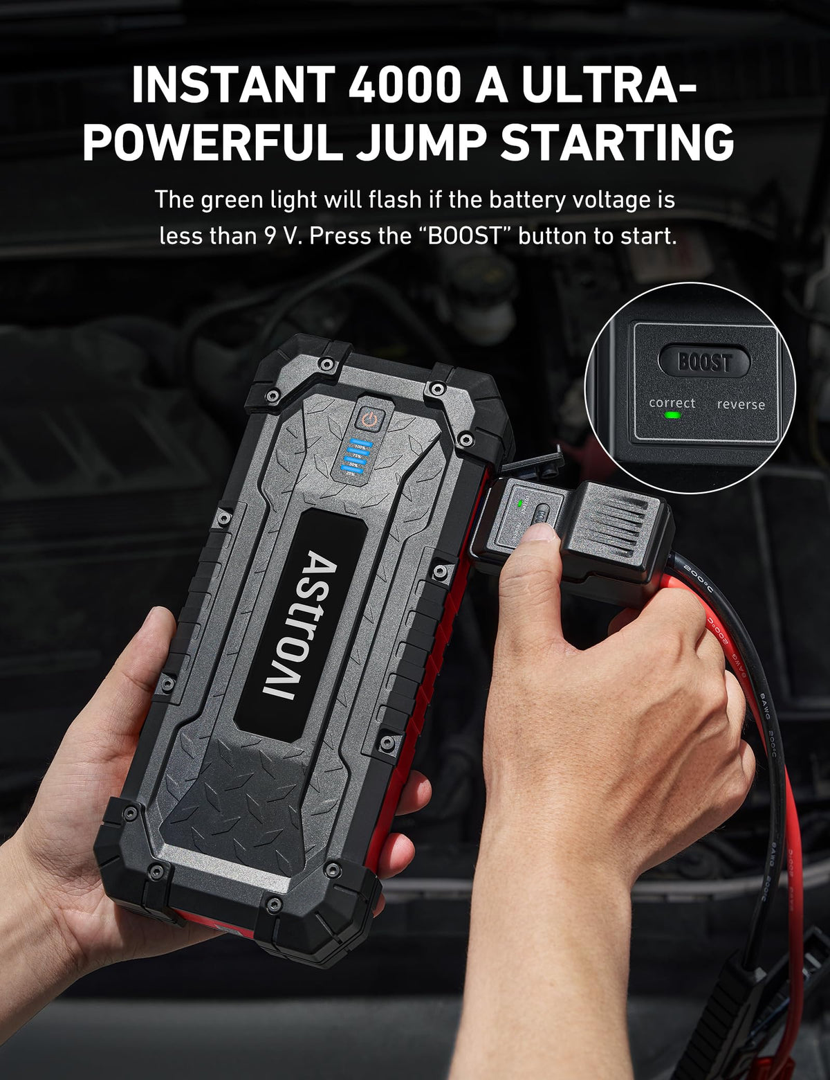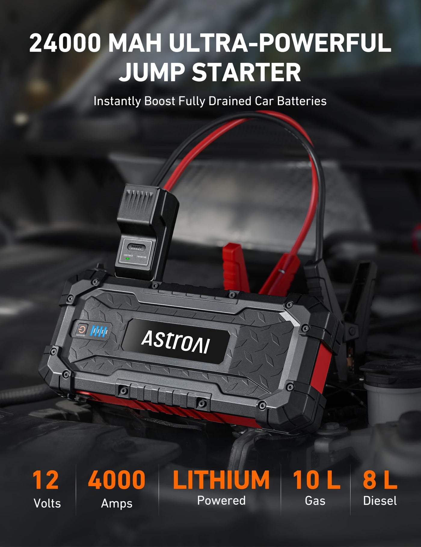 Astroai S8 Ultra Jump Starter Battery Pack, 4000A Battery Jump Starter With Wall Charger For Up To 10.0L Gas & 8.0L Diesel Engin