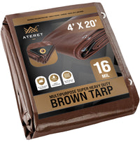 Ateret 20' X 30' Super Heavy Duty 16 Mil Brown Poly Tarp Cover - Uv Resistant, Thick Waterproof, Rip And Tear Proof Tarpaulin With Grommets And Reinforced Edges