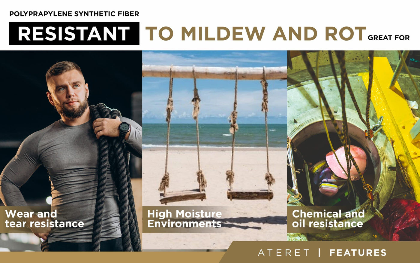 Q: Can this rope be used in wet environments?A: Yes, the ATERET twisted polypropylene rope is specifically designed to float in water, making it perfect for use in wet environments such as pools, lakes, oceans, and during maritime activities. Its resistance to marine growth and chemicals also ensures it remains effective even in challenging conditions.