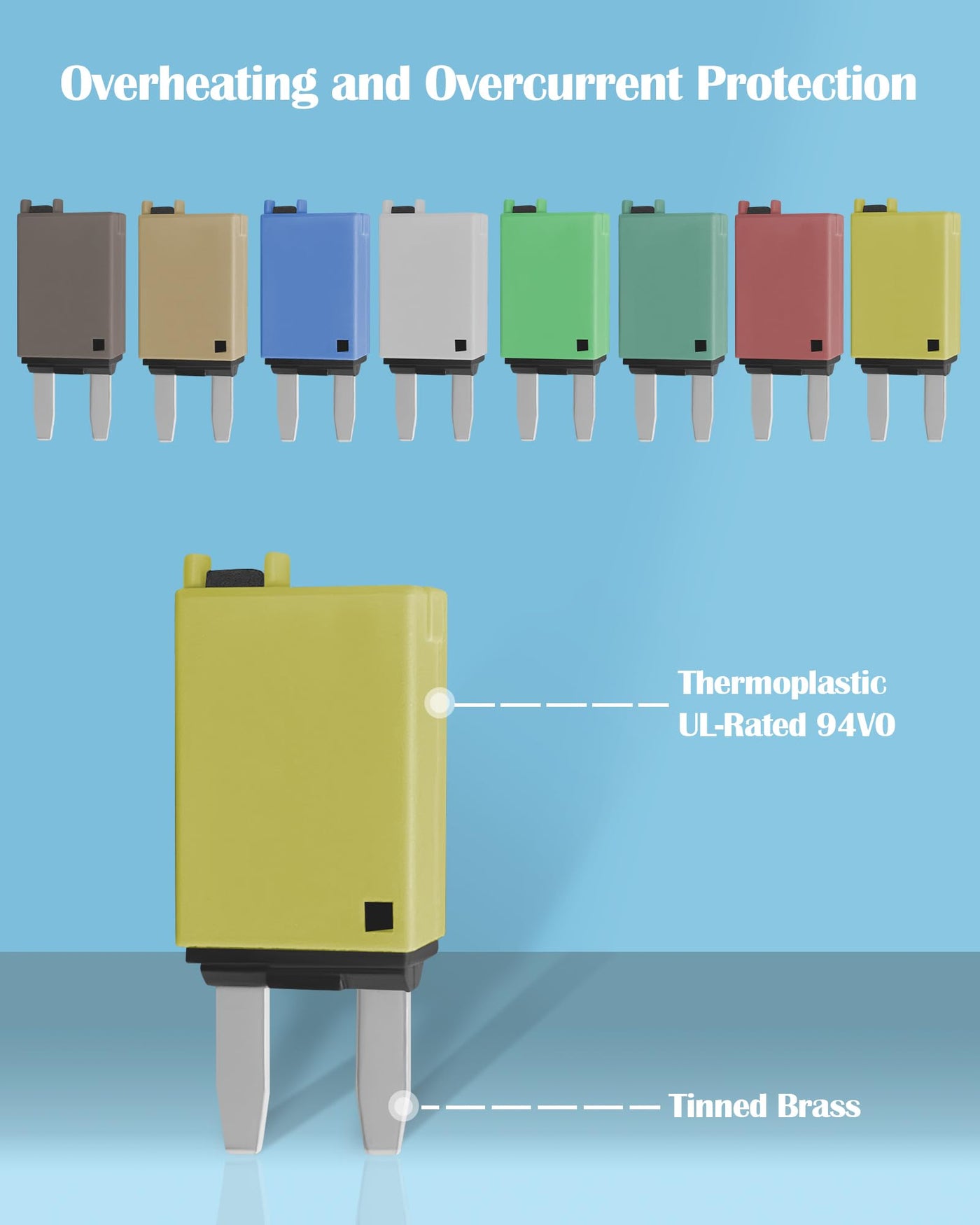 Constructed from durable materials, these fuses feature a UL-Rated 94V0 thermoplastic body with tin-plated copper alloy terminals. The innovative manual reset design allows users to quickly restore functionality without the need for constant replacement. With compatibility for 280 type fuse blocks and a compact size, these circuit breakers are ideal for 12V DC power systems in vehicles, boats, and recreational vehicles.