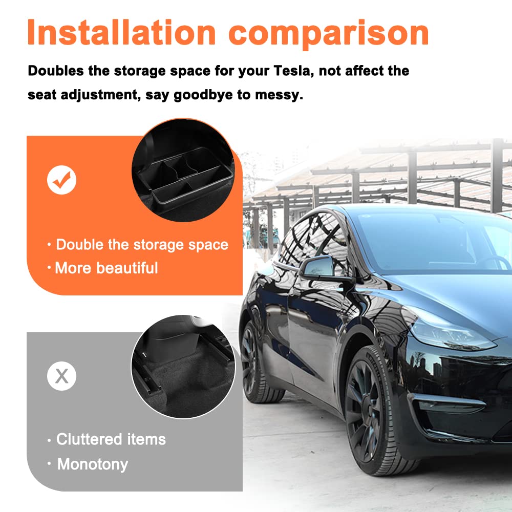 Atnvidsg Rear Underseat Organizer Compatible With Tesla Model Y 2020 2021 2022 2023 Abs Organizer Center Console Organizer (Black Abs)