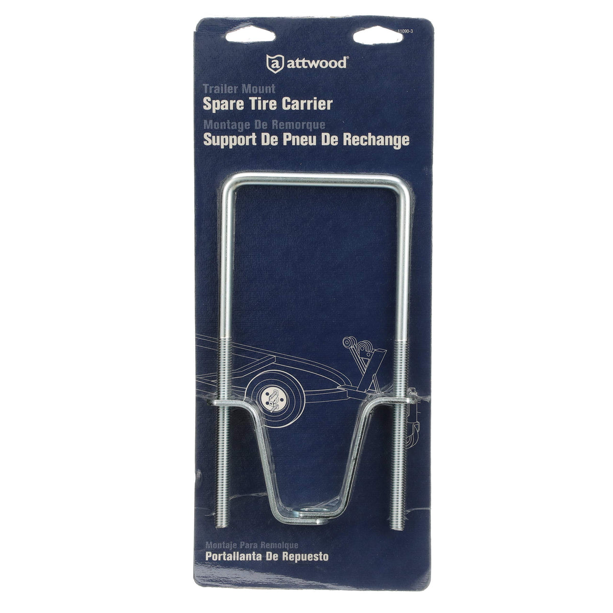 This Attwood U-Bolt Style Tire Carrier makes it easy and convenient to secure a spare tire to a trailer tongue or frame. This square bend U-bolt has threaded brackets that can be locked together (padlock not included). The U-bolt is sturdy and durable zinc-plated steel. The trailer tongue or frame must be between 2 inches x 2 inches square and 3 inches x 4 inches rectangular in size. This carrier holds 4- or 5-lug-hole rims, and with its extra-long 8 -inch shaft, it can hold 8-inch to 15-inch tires. Attwood Corporation has been an award-winning leader in engineering, testing, and manufacturing the highest quality marine products for over 100 years. We deliver safe and reliable lighting, fuel systems, water systems, seating & pedestals, swim ladders, custom upholstery, and general marine accessories that are easy to install and meet regulatory compliance.
