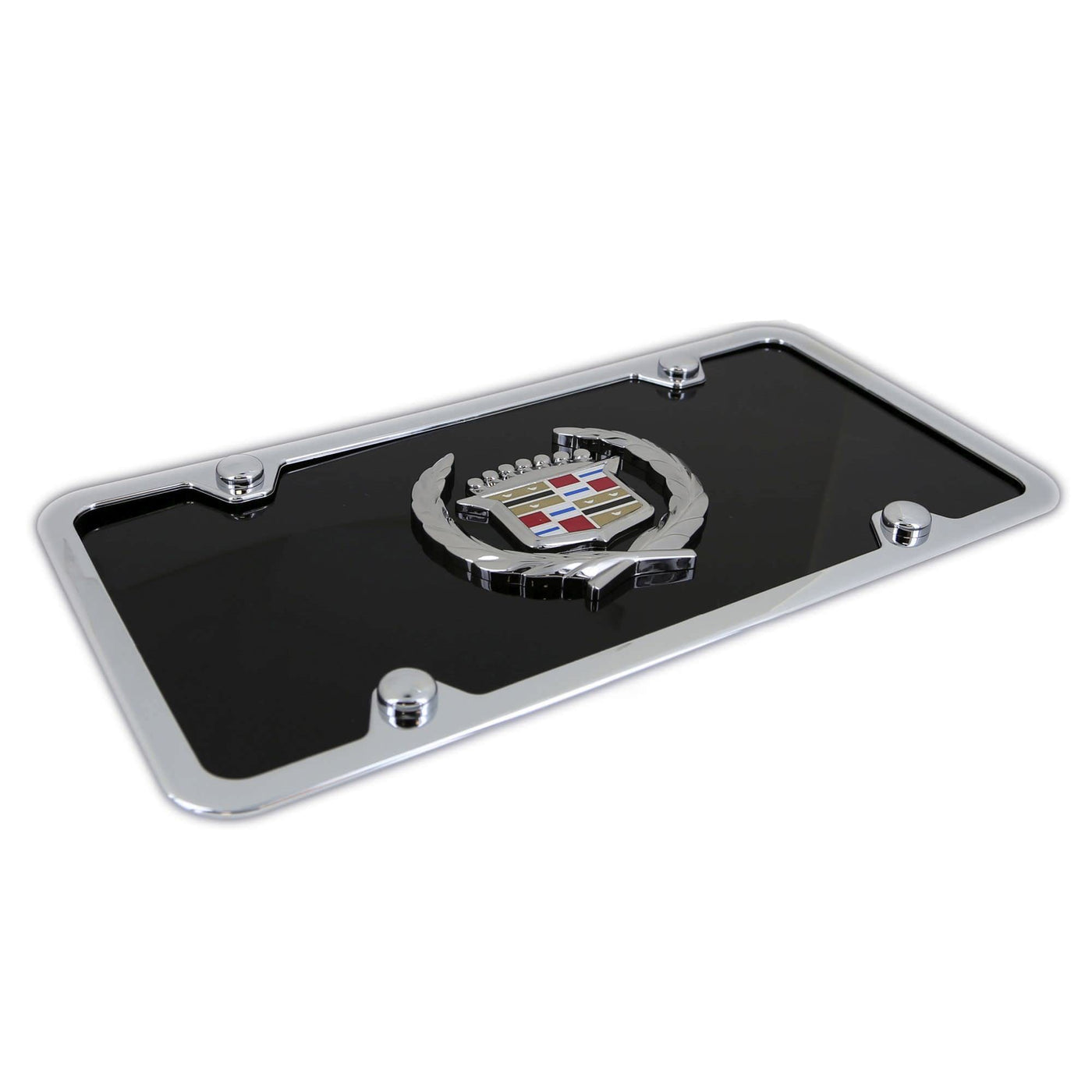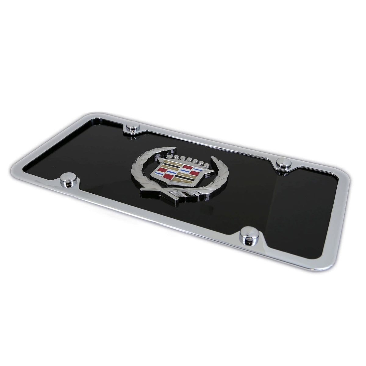 Au-Tomotive Gold Classic Logo On License Plate + Frame For Cadillac (Black)