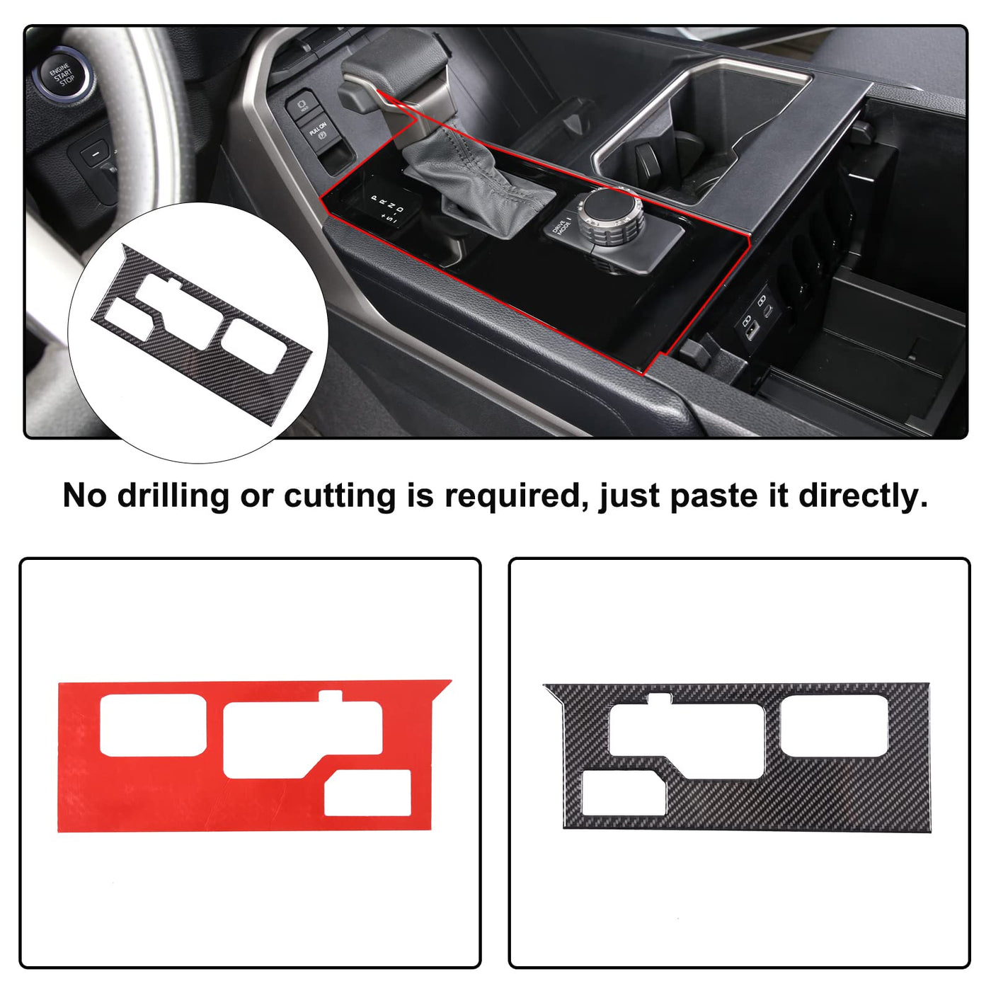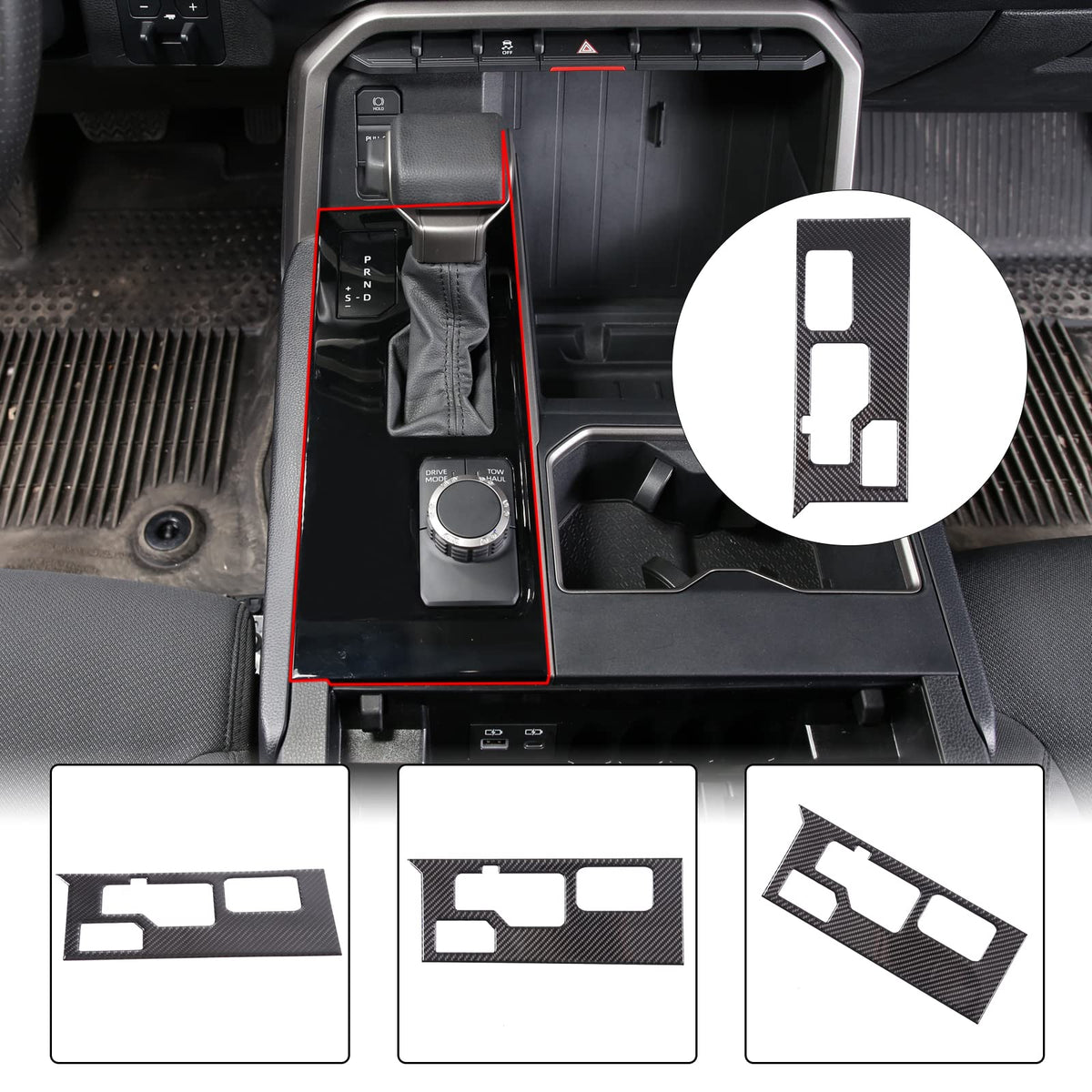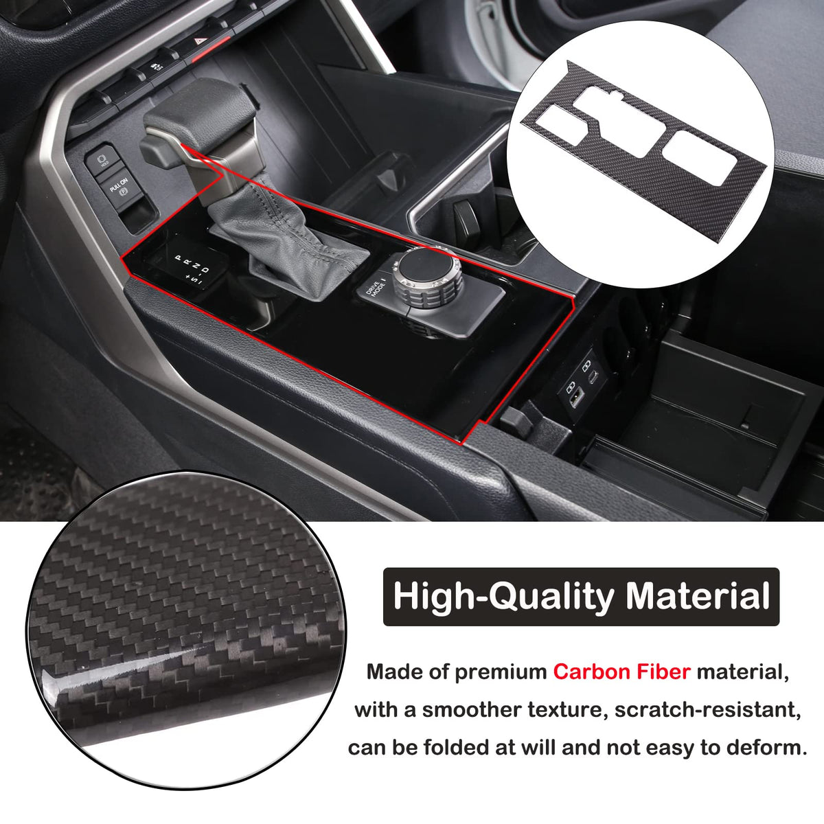 Aunginsy Center Control Gear Box Shift Knob Panel Sticker Cover Compatible With Toyota Tundra/Sequoia 2022-2024 Car Real Carbon