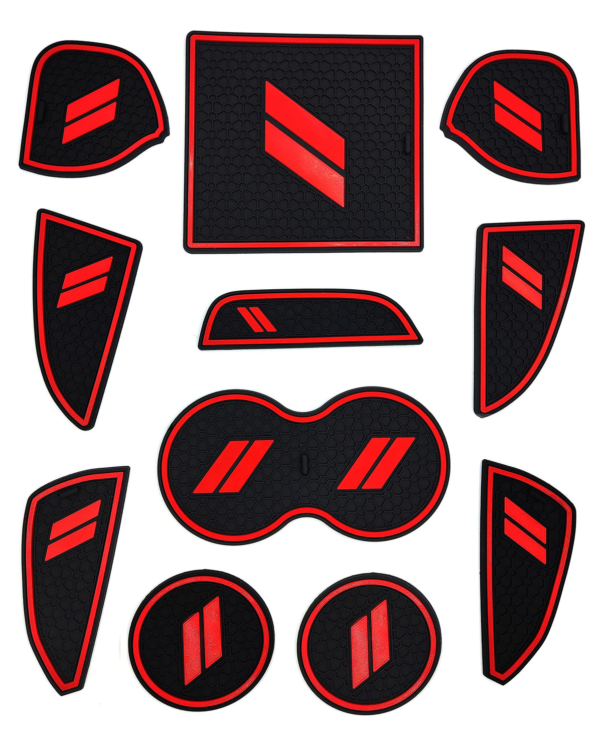 Auprite Anti-Dust Non Slip Mats for Dodge Challenger Accessories 2015-2022 (Red Trim,11Pcs/Kit).FEATURES: 1.Fitment: For Dodge Challenger 2022/2021/2020/2019/2018/2017/2016/2015, including trims of SXT, SXT PLUS, R/T, GT AWD, R/T PLUS, RT SHAKER, T/A, R/T SCAT PACK, R/T PLUS SHAKER, 392 HEMI SCAT PACK SHAKER, T/A 392, SRT 392. 2.Built to protect and enhance your vehicle. Finish the interior, and deaden little sounds from setting bottles down etc. They also add a little friction to the surfaces. 3.With Non-Skid Backing&Small Handles on the mats, help you keep the crud out of the recesses, provide a convenient way for you to keep your car more neat.SPECIFICATION :Product Name: Cup Holder Insert & Center Console Shifter Liner Trim Mats Vehicle Service Type : For Dodge Challenger 2015-2022 11 Pieces/ set GOOD QUALITY Color: Red Trim Item Weight : 5.0 ounces Material: Premium Rubber. Small Handles. Easy to Clean. Washable. Non-slip texture surface and sticky bottom surface.All-Weather Protection against Sleet,Ice, Snow, and Rain. By purchasing our Cup Holder Liner Mats/Door Pocket Center Console Liners; you'll add a vibrant splash of color to your interior, make your vehicle far more functional and ensure that cleaning your car is a breeze! If you spill or get crumbs in any compartment, simply remove them and wash them in the sink with warm soapy water. The console tray provides a convenient place to store coins, sunglasses, lip balm, and even credit cards.LIFETIME WARRANTY - 100% MONEY BACK GUARANTEE ensures this will quickly become your favorite no-risk purchase. Auprite auto cup holder and console interior accessories protect from damage and increase your resale value. Plus we GUARANTEE this is the only liner car accessories set you’ll ever need to buy for the life of your vehicle!