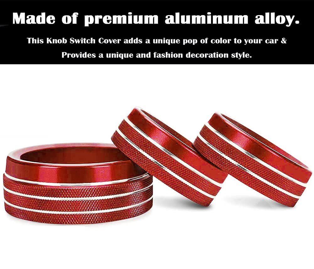 Q: What material are the knob covers made from?A: The knob covers are made from durable premium anodized aluminum alloy, which not only enhances the aesthetic appeal of your car's interior but also provides strong anti-corrosion properties for long-lasting use.