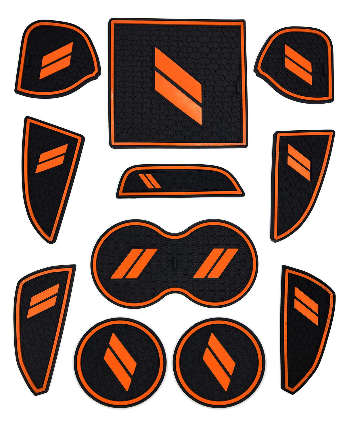 Auprite Non-Slip Anti Dust Mats For Dodge Challenger Accessories 2015-2022, Custom Cup Holder Liners Mats Door Pocket Center Console Liners (Orange/11Pcs)