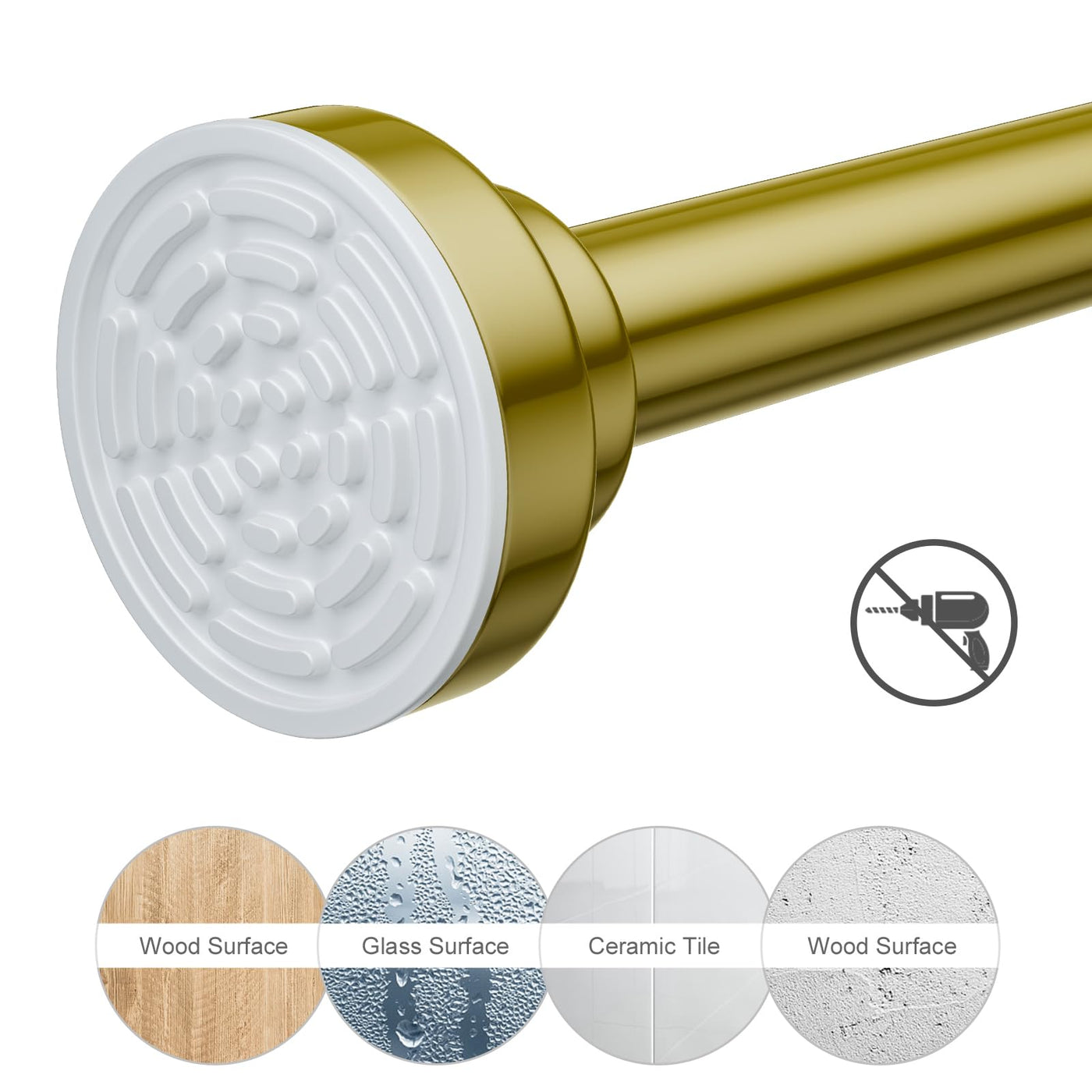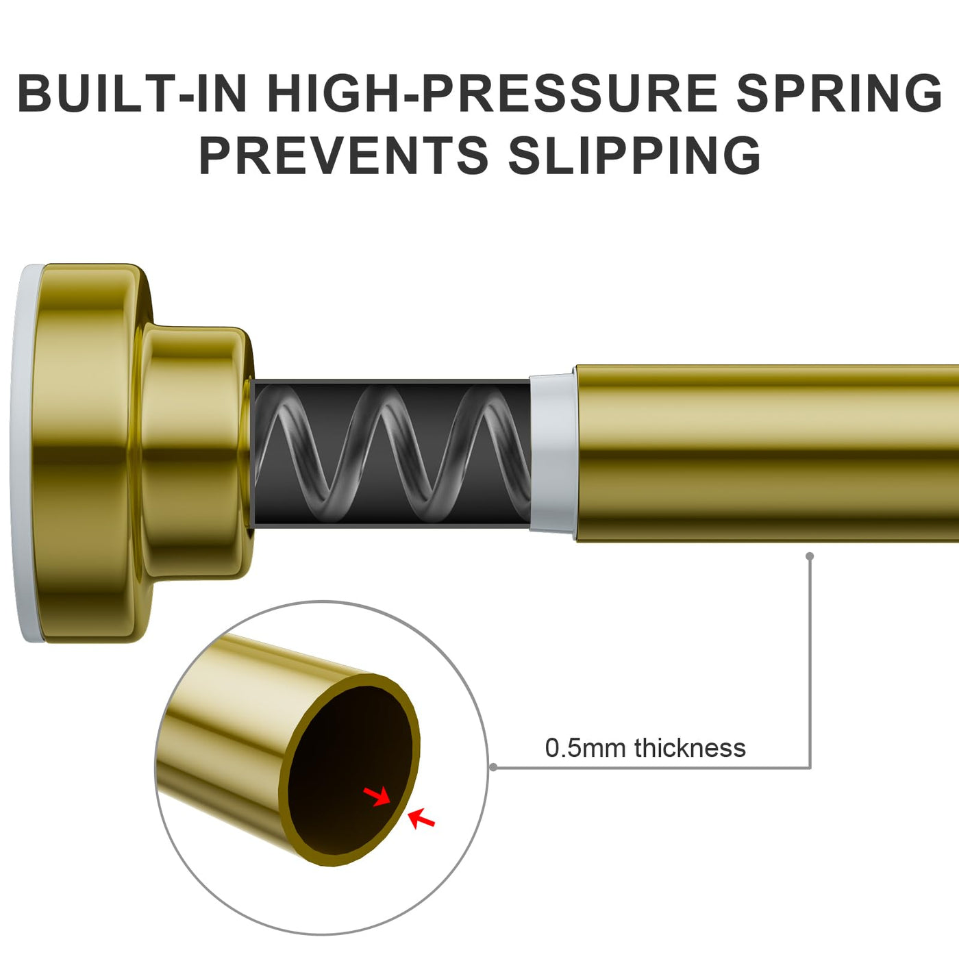 Ausemku Shower Curtain Rod Tension - 26-76 Inch Never Rust Non-Slip Spring Tension Curtain Rod No Drilling Stainless Steel Curtain Rod Use Bathroom Kitchen(Golden Yellow)