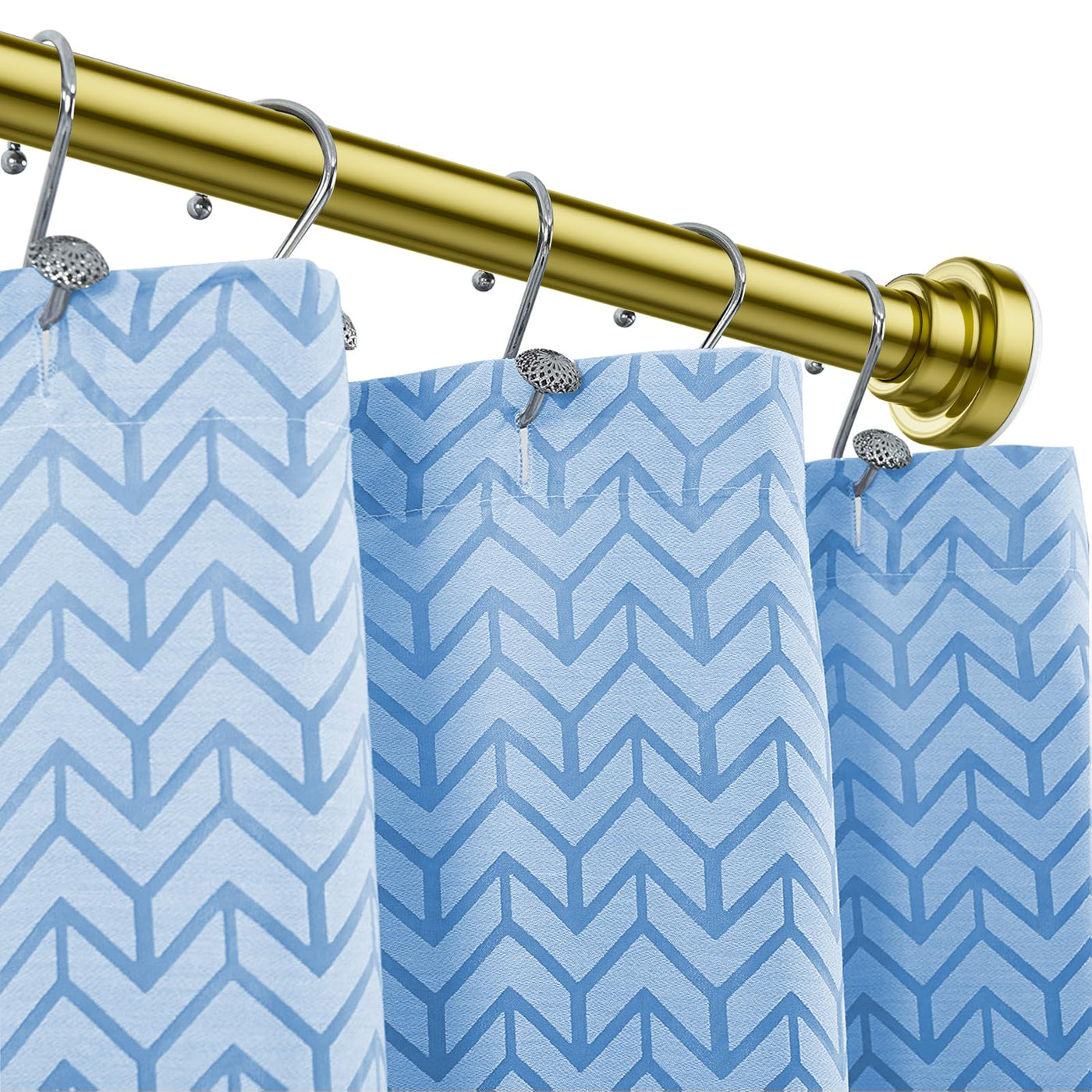 Our shower curtain rod provides a creative and simple way to hang shower curtains in minutes without drilling. Simply adjust the rod to the suitable length, then the tension of the spring inside will complete the rest!