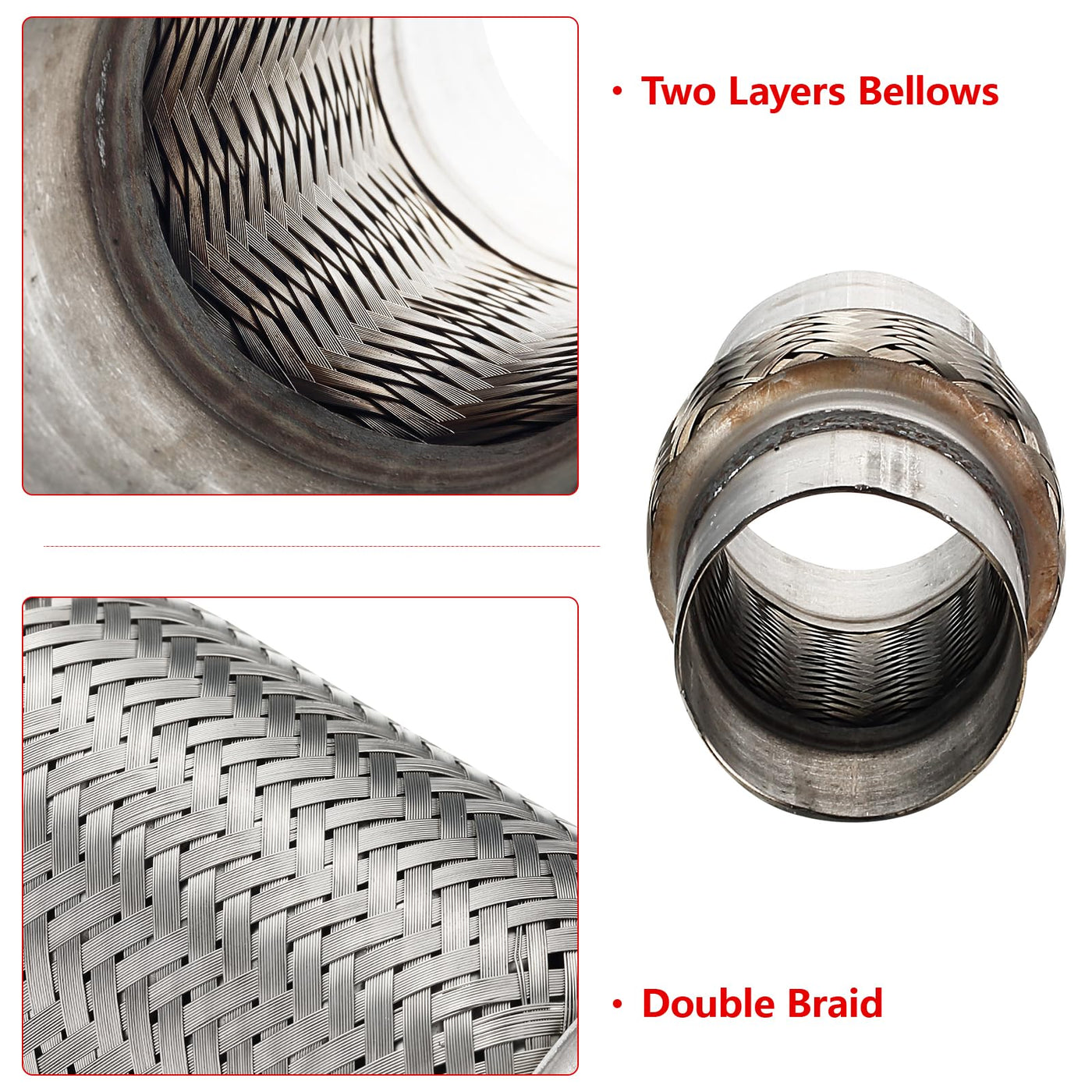 Autarboor 2 Pcs Exhaust Flex Pipe, 2.25''X 4''Stainless Steel Heavy Duty Exhaust Flex Pipe, Double Braid Exhaust Flex Tube, Over