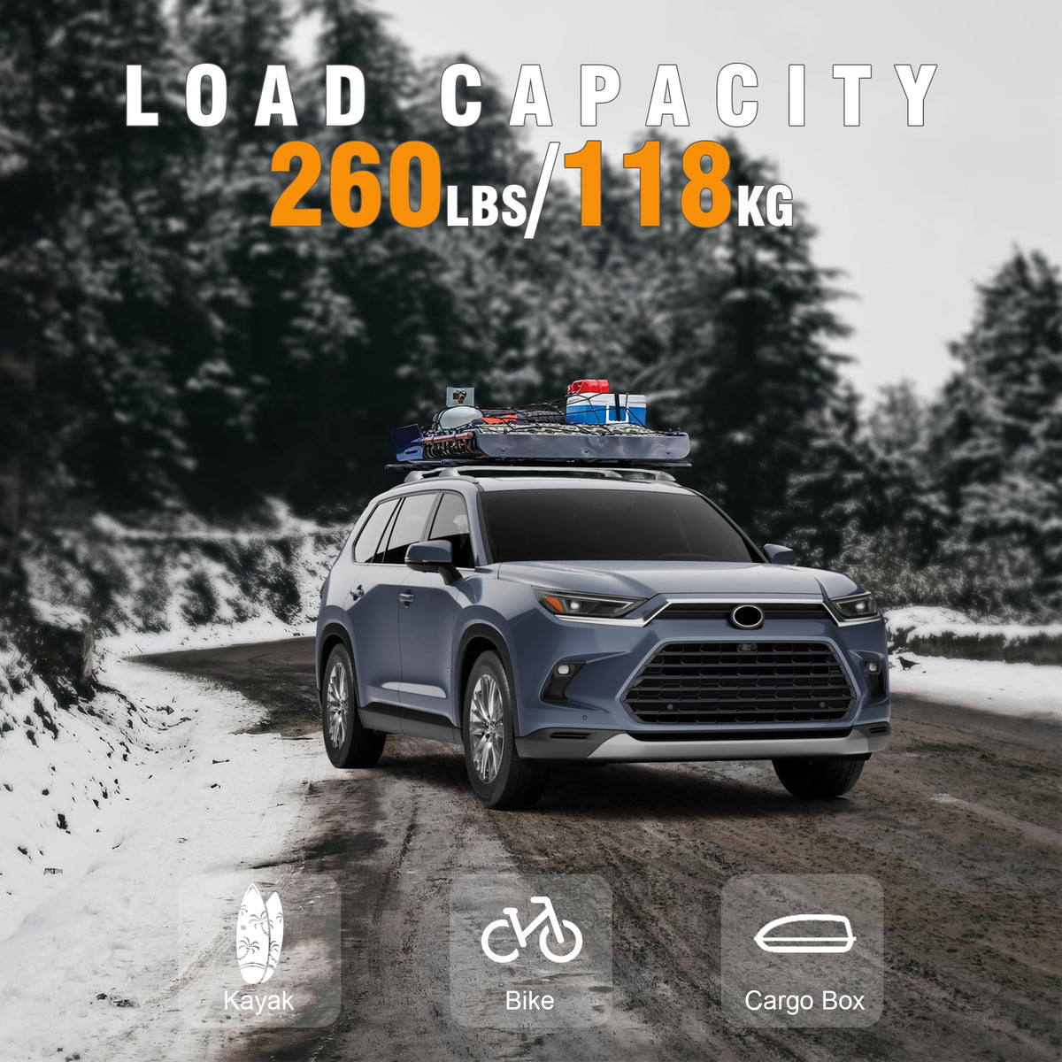 Autekcomma Heavy Duty Silver Upgraded Roof Rack Crossbar Compatible For Toyota Grand Highlander 2024Up All Grades.Max 260Lb Load