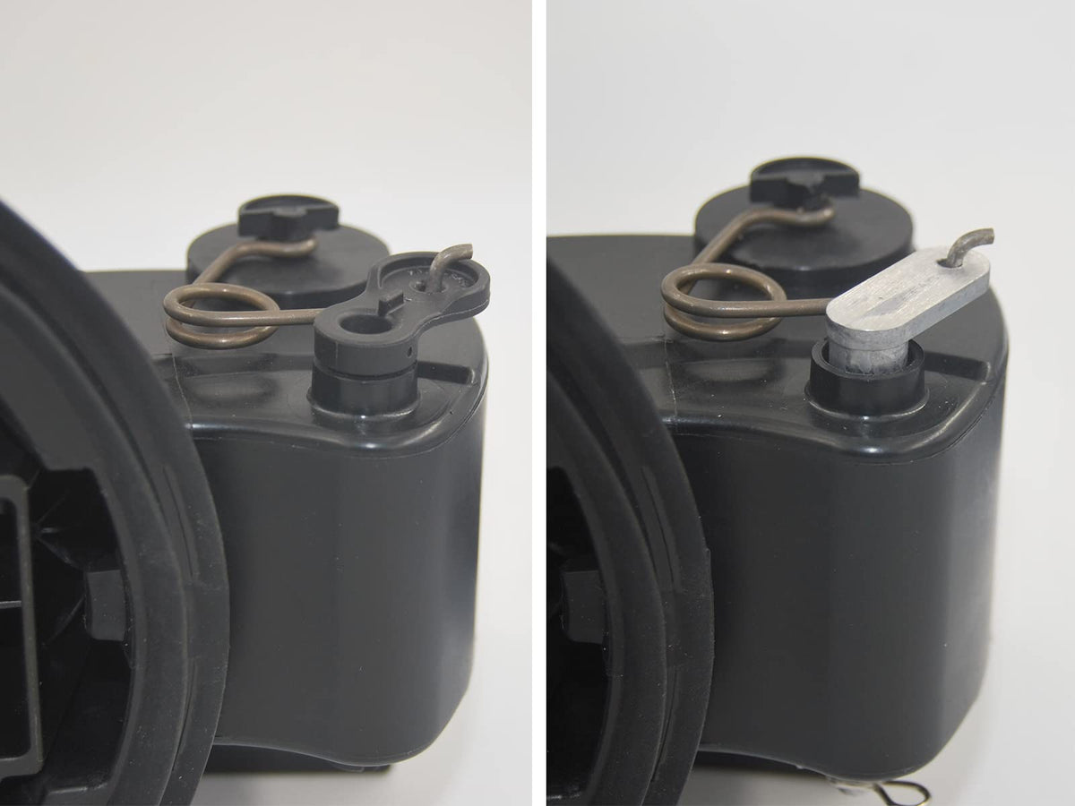 Q: How does the redesigned metal hinge improve the fuel door's functionality?A: The redesigned metal hinge provides a more durable and reliable solution than the original plastic hinge, preventing the gas tank lid from remaining open or loose. This ensures a secure fit and alleviates worries about fuel door issues.