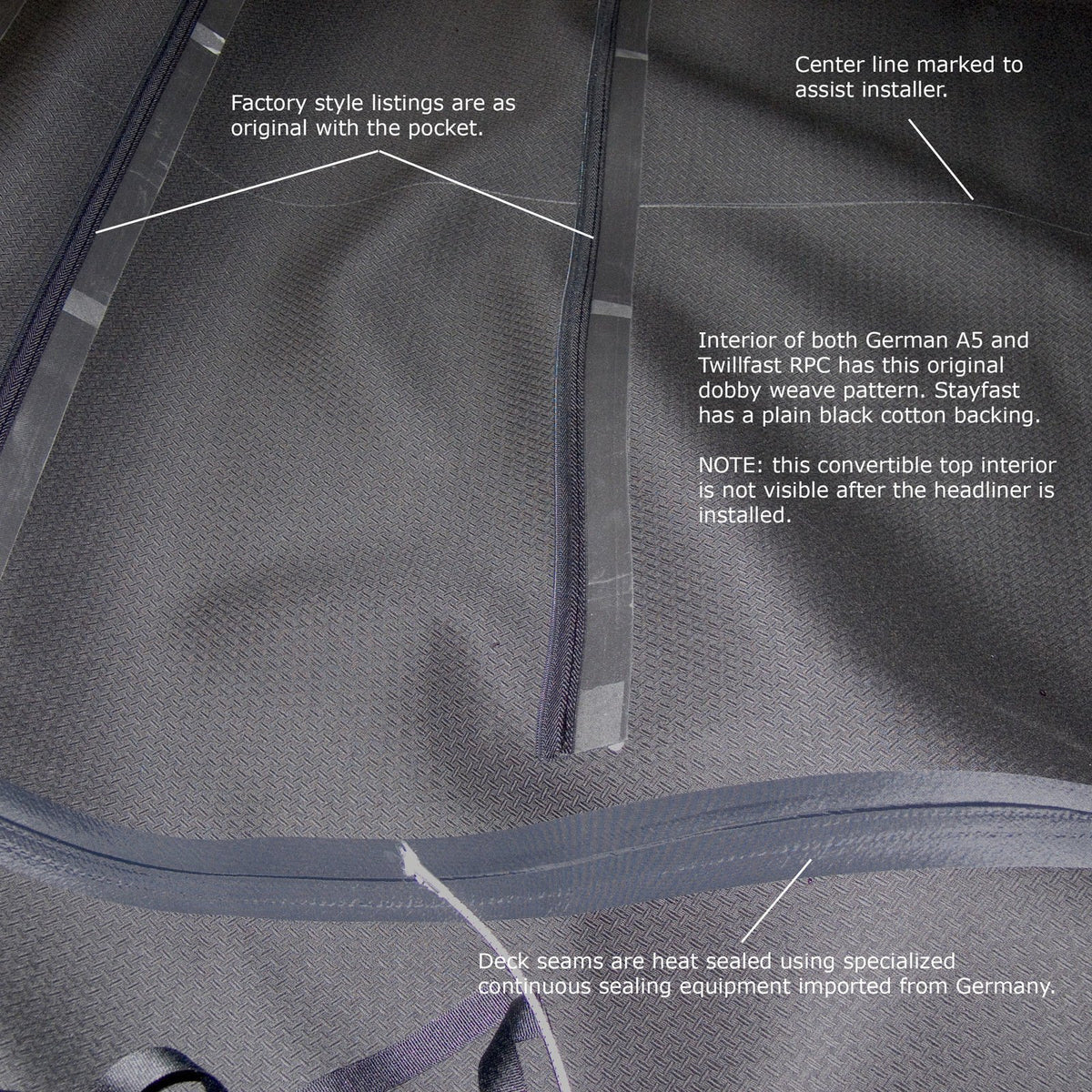 Q: What material is used for the AutoBerry Convertible Top?A: The convertible top is made from high-quality black canvas cloth that is manufactured from factory original style material, ensuring durability and a perfect fit.