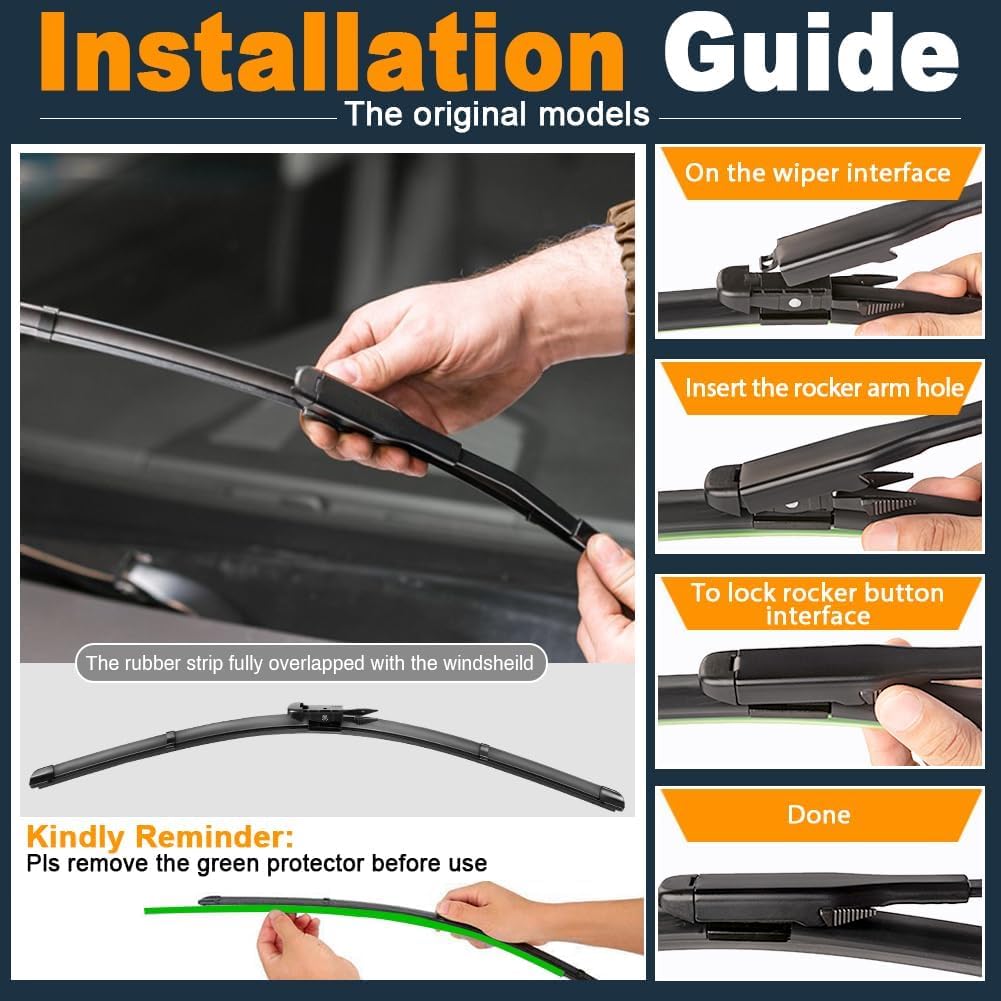 Q: How do I install the AUTOBOO wiper blades?A: Installation of the AUTOBOO wiper blades is straightforward, thanks to the direct-fit connector that eliminates the need for a universal adapter. Simply remove the old wiper blades and attach the new ones by following the included instructions for a quick and easy installation.