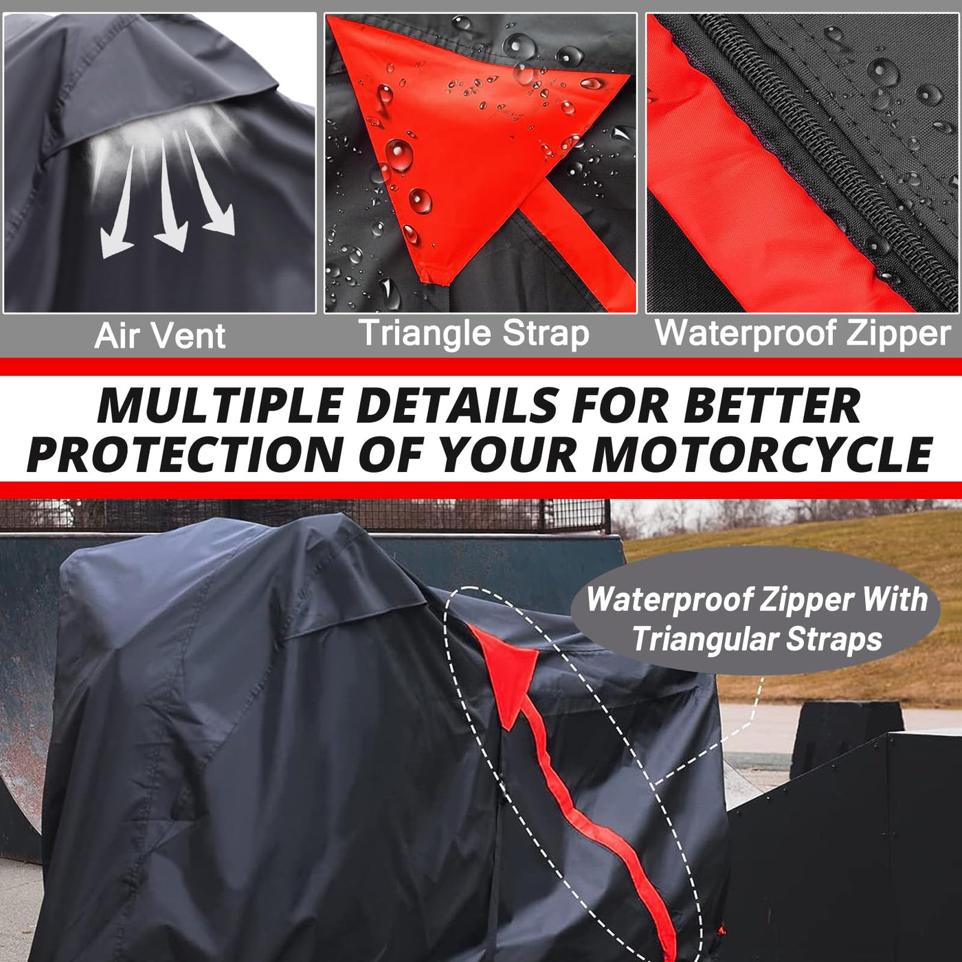 Autolion Motorcycle Cover,Waterproof Zipper Outdoor Cover For All Seasons Windproof, High Heat Resistance Dustproof And Rainproo