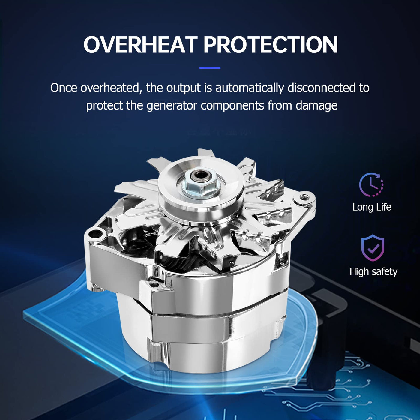 Automotive Alternator Compatible For 120Amp Chrome 1 Wire Self Exciting Street Rod Gm 305 350 Bbc Sbc
