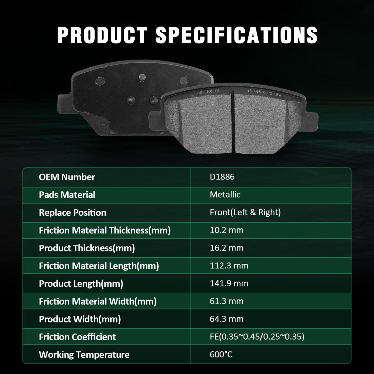 Automuto 4Pcs Front Brake Pads D1886 For Buick Envision 16-20/Lacrosse 17-19/Regal Sportback 18-20/Regal Tourx 18-20,For Cadilla