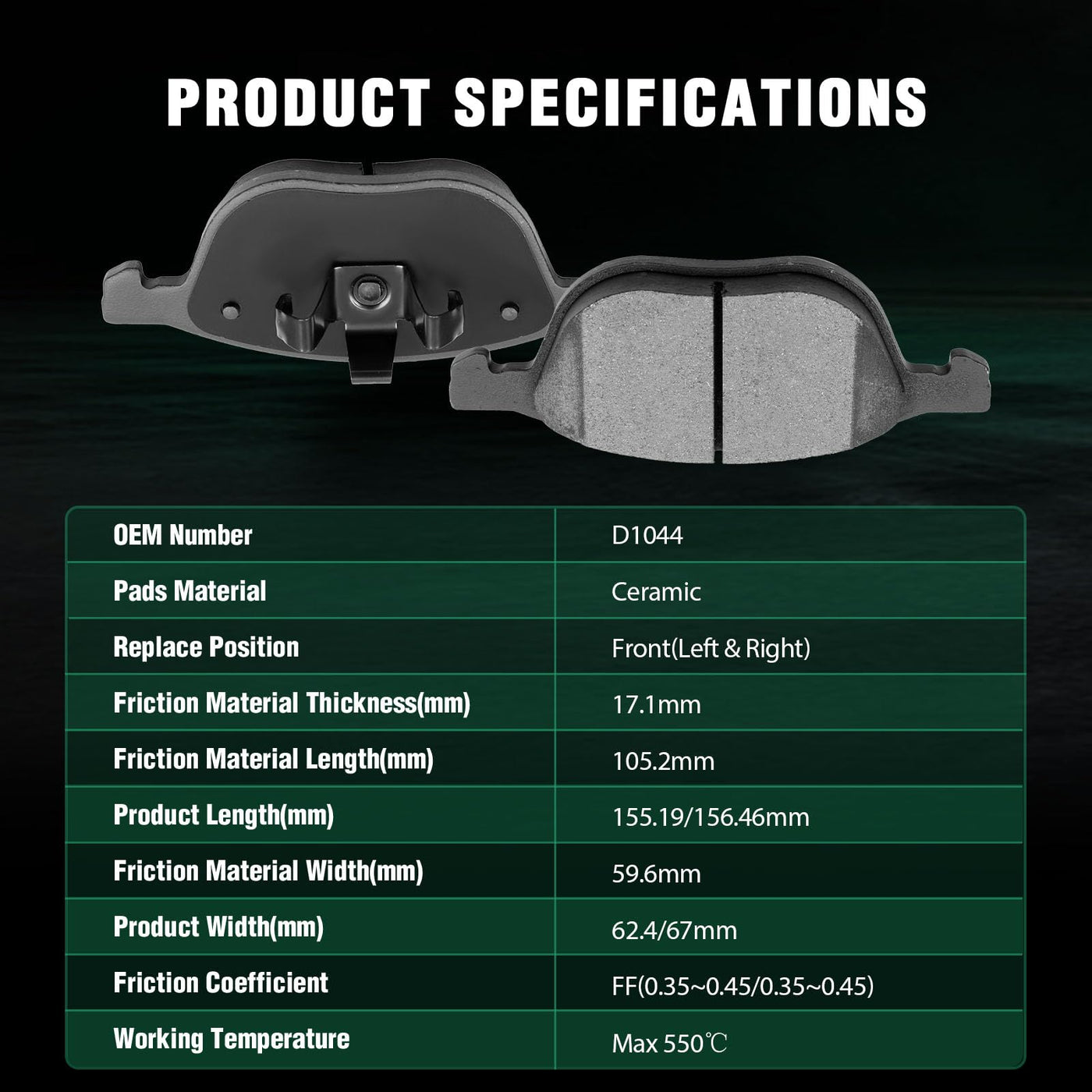 Automuto 4Pcs Front Ceramic Disc Brake Pads Set D1044 For Ford C-Max Ecosport Escape Focus Transit Connect For Mazda 3 3 Sport 5