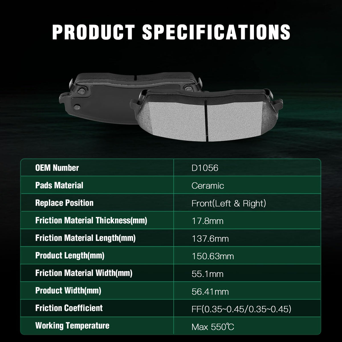 Automuto 4Pcs Front Ceramic Disc Brake Pads Set D1056 For Chrysler 300 2005-2019,For Dodge Challenger 2009-2019,For Dodge Charge
