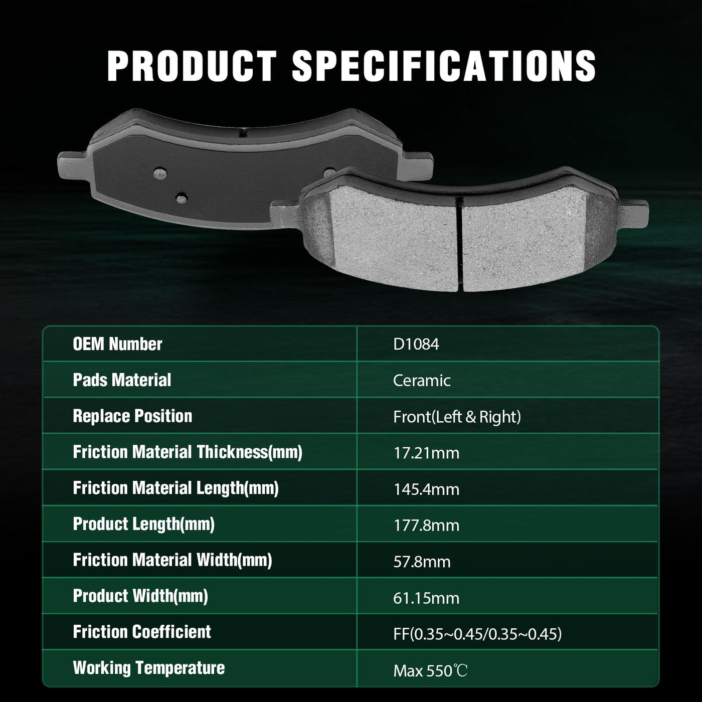 Automuto 4Pcs Front Ceramic Disc Brake Pads Set D1084 For Chrysler Aspen For Dodge Dakota Durango Ram 1500 For Jeep Wrangler For