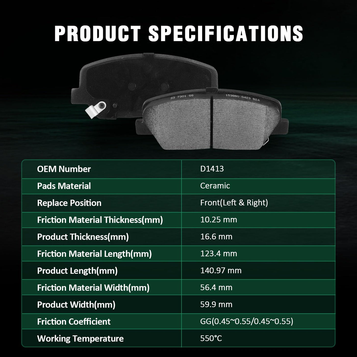 Automuto 4Pcs Front Ceramic Disc Brake Pads Set D1413 For Hyundai Genesis Coupe 2010-2016,For Hyundai Veloster 2013-2016,For Kia