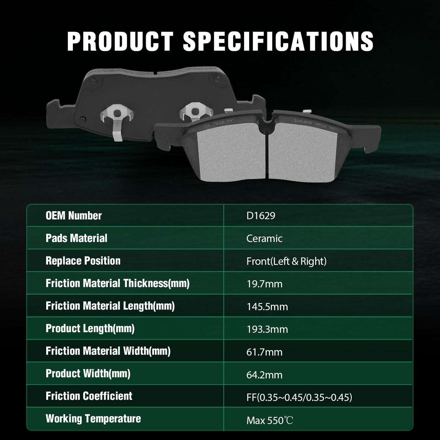 Automuto 4Pcs Front Ceramic Disc Brake Pads Set D1629 For Dodge Durango For Jeep Grand Cherokee For Mercedes-Benz Gl350 Gl450 Gl