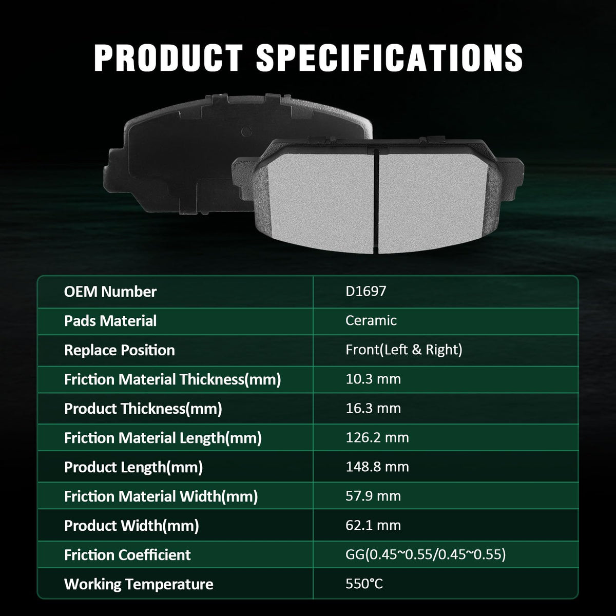 Fits:For Acura ILX A-Spec Sedan 4-Door 2017-2020For Acura ILX Base Sedan 4-Door 2016-2022For Acura ILX Tech Sedan 4-Door 2017-2020For Acura RDX Base Sport Utility 4-Door 2014-2018For Acura RLX Base Sedan 4-Door 2014-2020For Acura RLX Elite Sedan 4-Door 2015For Acura RLX Tech Sedan 4-Door 2015For Honda Civic Si Coupe 2-Door 2017-2020For Honda Civic Si Sedan 4-Door 2017-2020Specifications:1)Placement on Vehicle: Front2)Brake Pad Material: Ceramic3)OEM Part Numbers: D1697-8840Package Including:4*Ceramic Disc Brake Pads Set